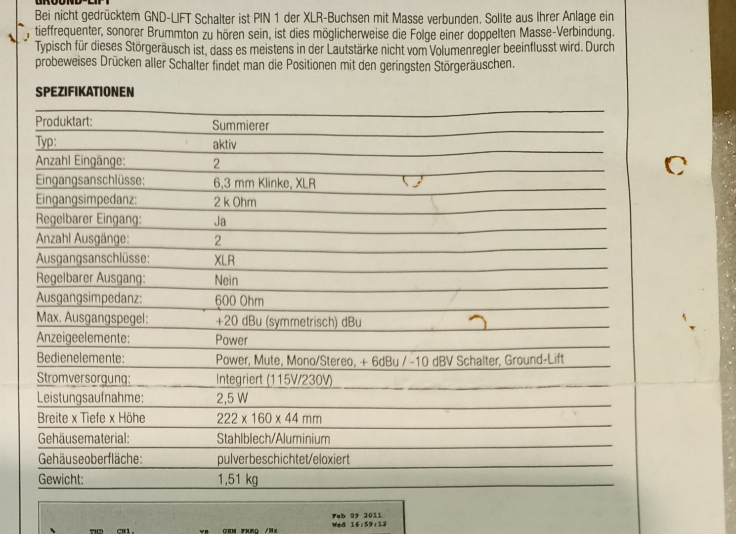 Nennimpedanz für Ein- und Ausgänge: 600 Ohm