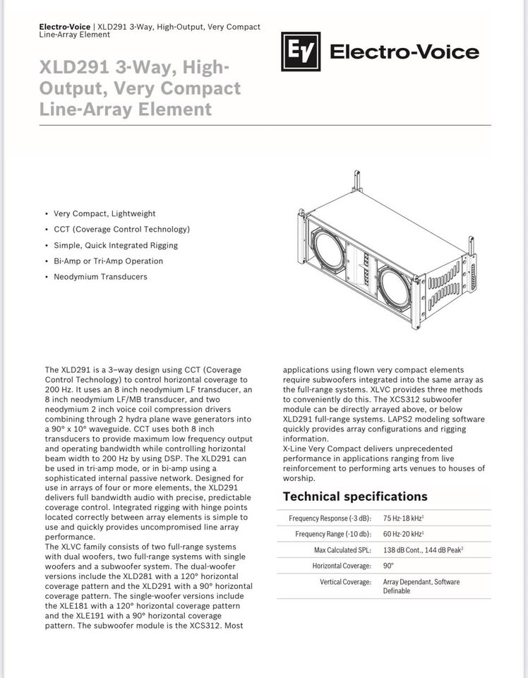 Zum Verkauf steht ein gepflegtes und technisch einwandfreies Set des bewährten EV XLD291 Systems. Die Boxen sind absolute Arbeitstiere, extrem kompakt und dank der 120° horizontalen Abstrahlung ideal für mittlere Events, Corporate Gigs oder Festinstallationen.