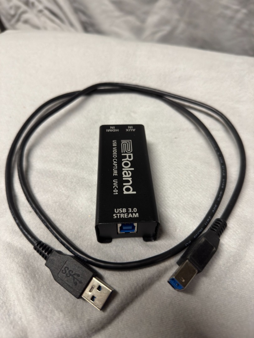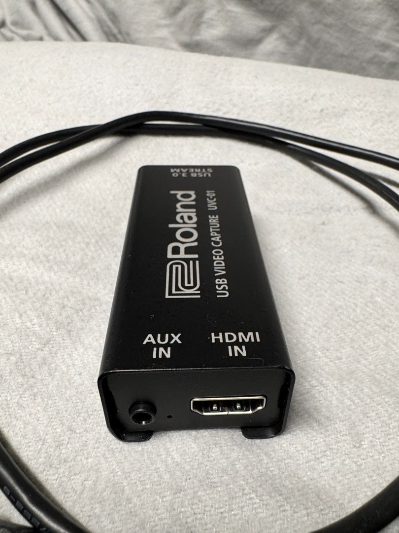 Zum Verkauf steht ein **Roland UVC-01** Video Capture Stick. Das Gerät wandelt ein HDMI-Signal verlustfrei in ein USB-Videosignal um und wird vom Computer sofort als Webcam erkannt (Plug-and-Play). Ideal für professionelle Livestreams, Hybrid-Events oder Videokonferenzen.