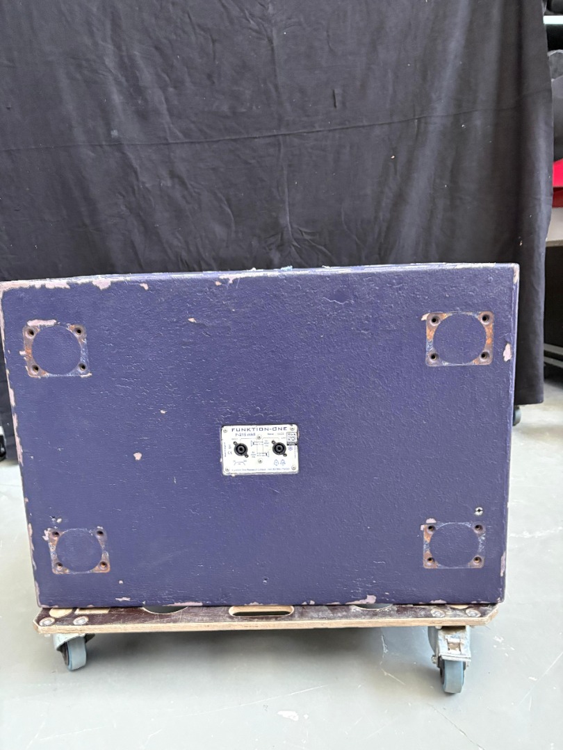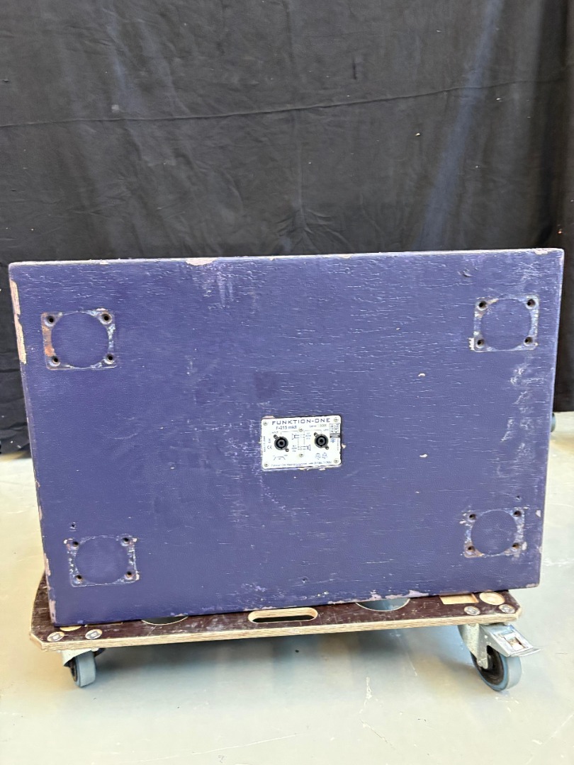 2× Funktion‑One F215 Mk2, voll horngeladene Doppel‑15″ Mid‑Bass‑Enclosures.