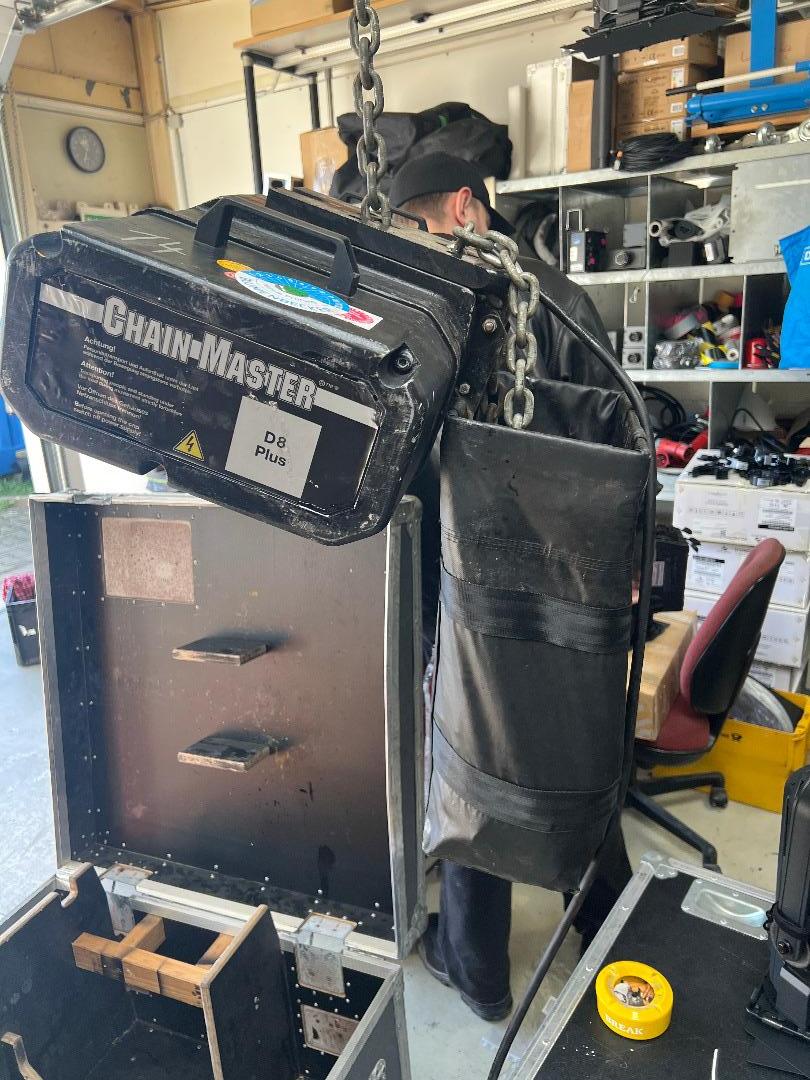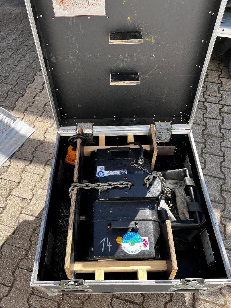 Zum Verkauf kommen insgesamt 4 Chainmaster D8+ 800kg Motoren im Amptown Case. Letzte Sachverständigen Prüfung 2022. Jährliche Sachkundigen Prüfung wurde durchgeführt und ist aktuell. Kettenlänge 24m