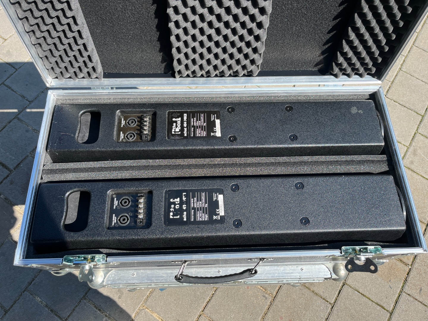 Die Lautsprecher haben unten den Winkel-verstellbaren Adam Hall Boxenflansch nachgerüstet.
