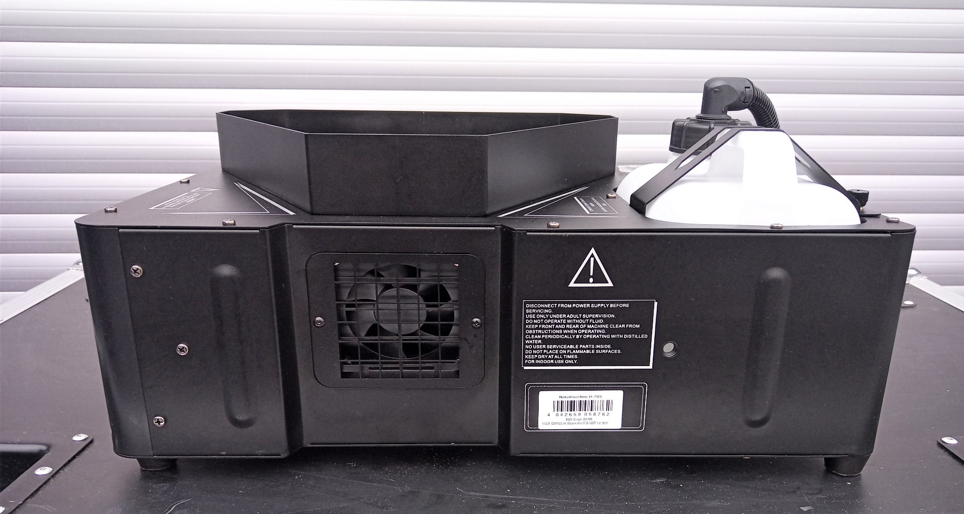 Wie auf den Bildern zusehen ist, handelt es sich hier bei um Vorführware. Die Nebelmaschinen sind gebraucht aber voll funktionsfähig und werden mit ausgewiesener MwSt. und Gewährleistung verkauft.