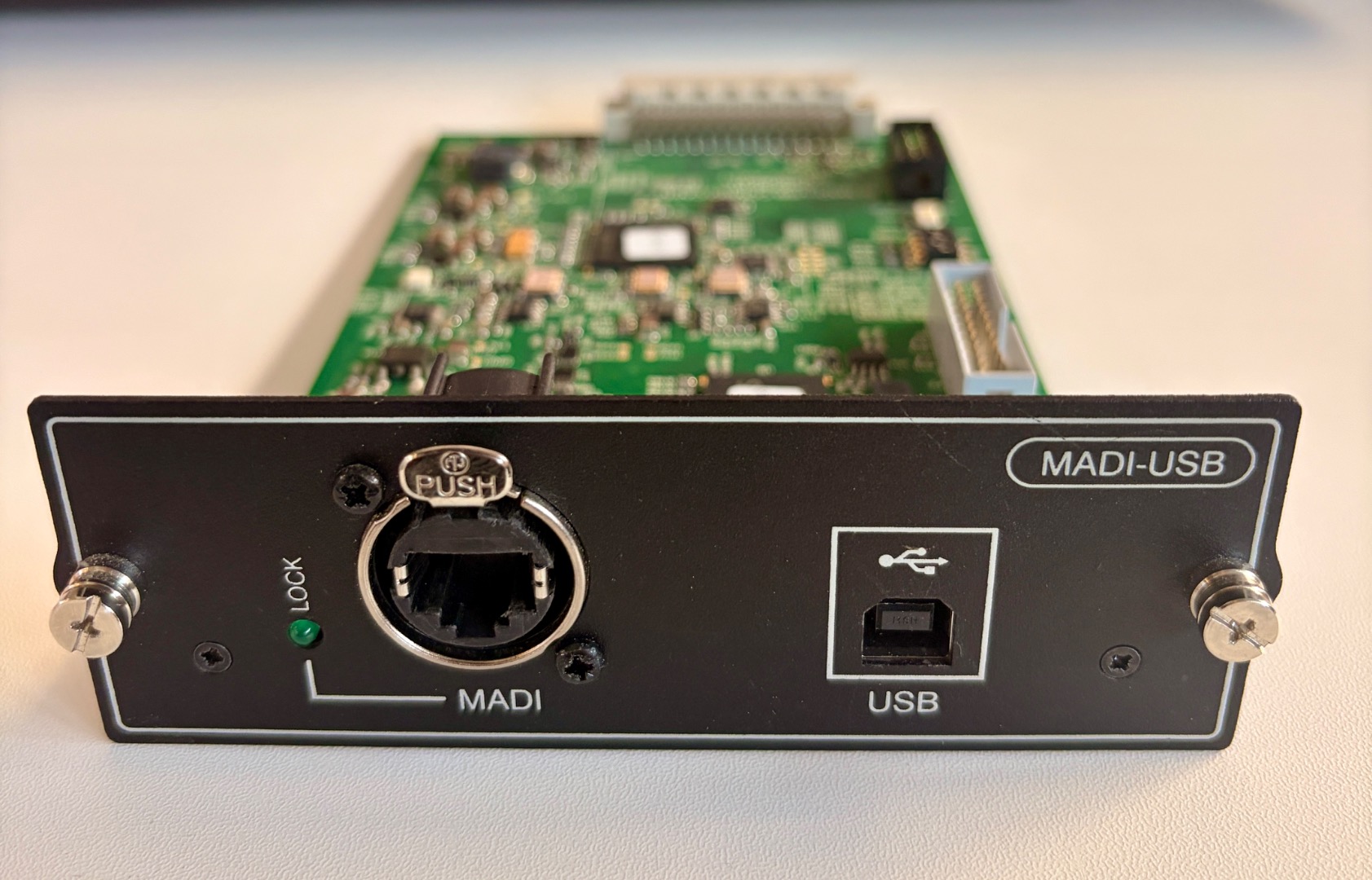 The Soundcraft® MADI-USB Combo card offers digital audio connection between an Si series console and Apple® Mac® or PC with a USB port as well as any of the Soundcraft range of Stageboxes via Soundcraft’s proprietary Cat 5 MADI connection.