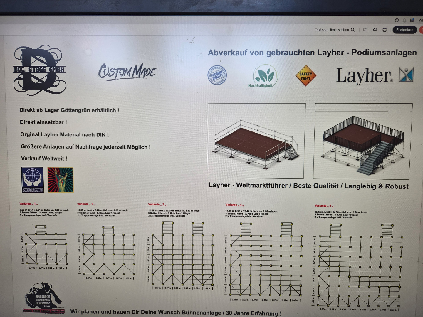 Layher - Podiumsanlage 10.35 m breit x 8.28 m tief x 1.30 m auf Wunsch können wir Euch auch Höhen von