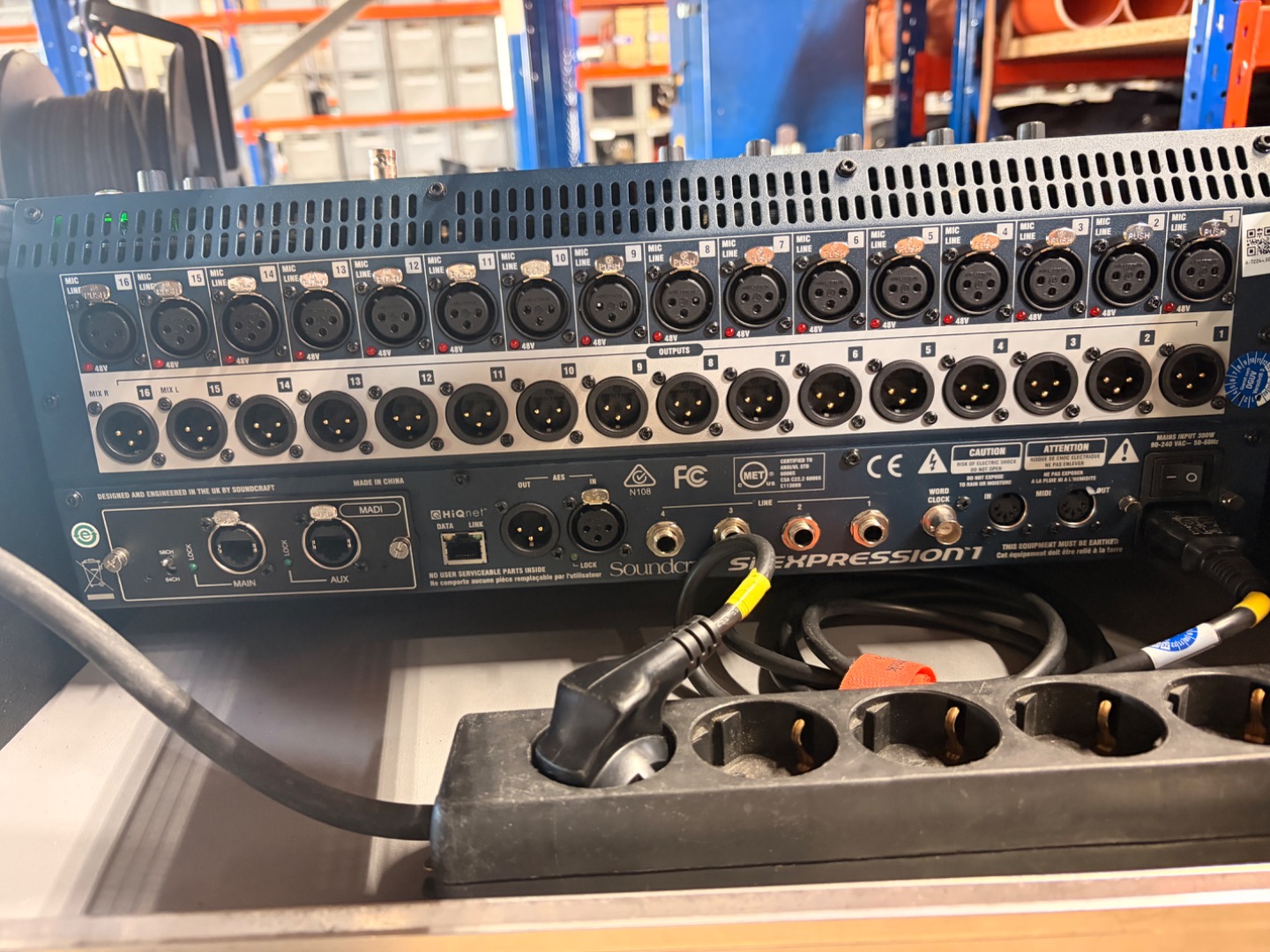 Kartenslot für optionale Karten (AES/EBU, MADI (optisch und Cat5/7), Aviom, CobraNet, RockNet und 2013 AVB, DANTE, BluLink und eine Recording Karte mit Firewire/USB & ADAT)