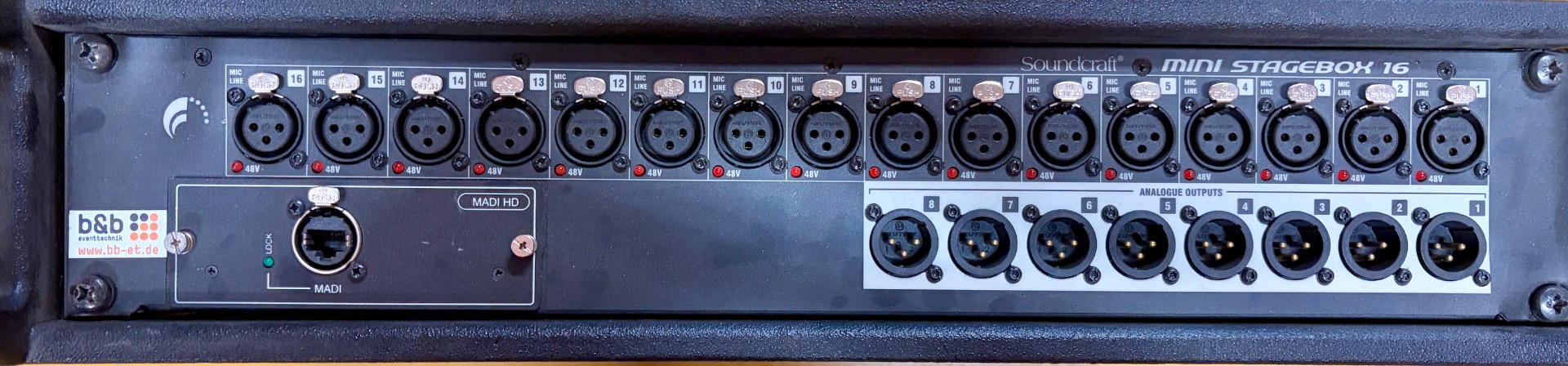 16 Mic/Line In, 8 Line Out