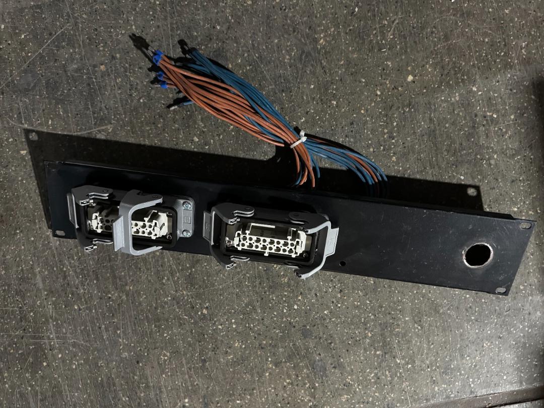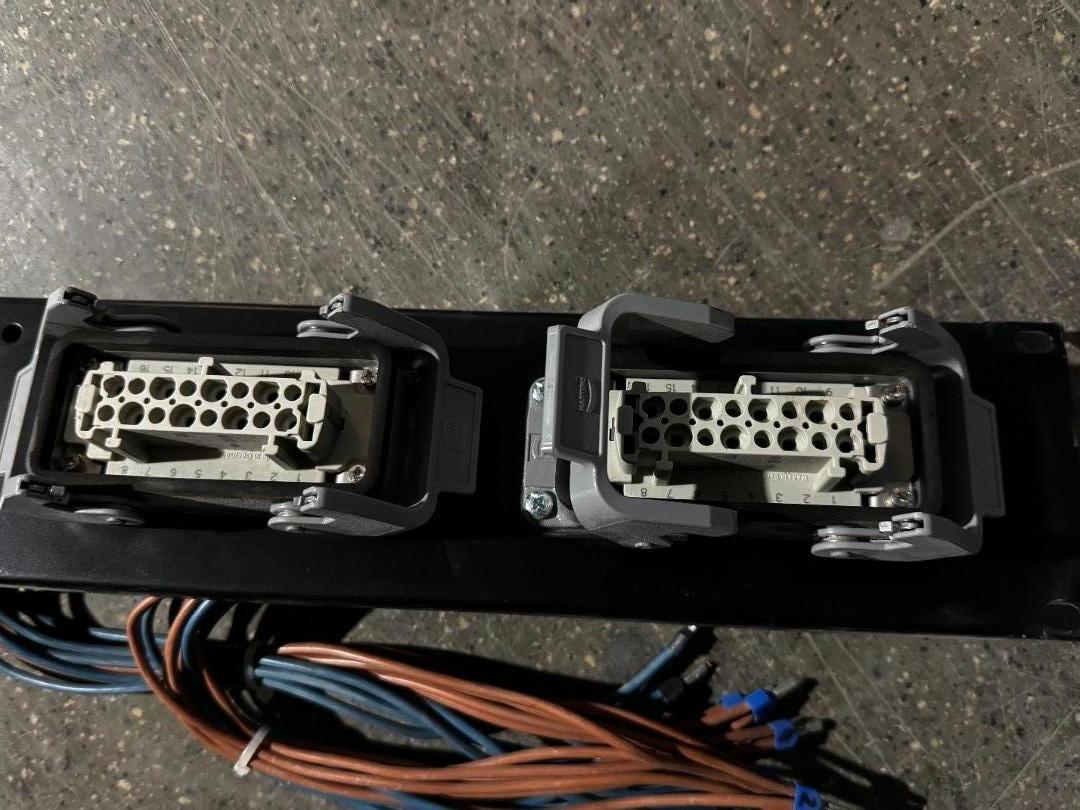 Wir verkaufen wie auf den Bildern zusehen, eine Rackblende mit Hartinganschlüssen und Verkabelung