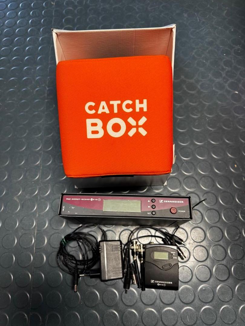 wir bieten eine CatchBox Pro mit Sennheiser EM 100 G2 und SK100G2 Frequenz Range A: 518-554MHz in Deutschland Anmeldefrei.