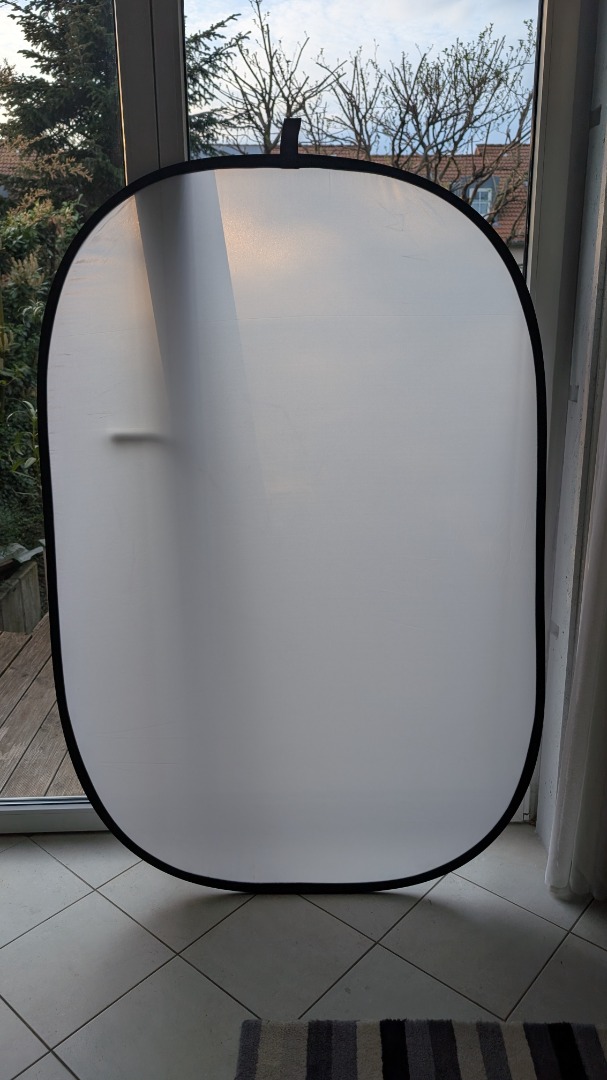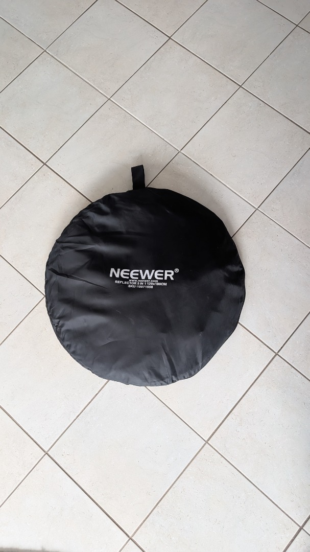 Hi, ich biete hier meinen Neewer 5in1 Reflektor 180cm x 120cm mit Tragetasche an. Er ist gebraucht und der Stoff hat dementsprechend schon den ein oder anderen leichten Fleck oder Strich beim Filmen von Produkten unter Wasser in einem Aquarium mit Leitungswasser abbekommen. Allerdings nicht in einem Ausmaß, dass es die Funktion beeinträchtigen würde. Siehe Bilder. Daher wird er gerne günstig an den Nächsten abgegeben. Der Reflektor wurde immer in geheizten Räumen gelagert und ist NICHT von Schimmel oder schlechten Gerüchen befallen. Nichtraucher Haushalt.