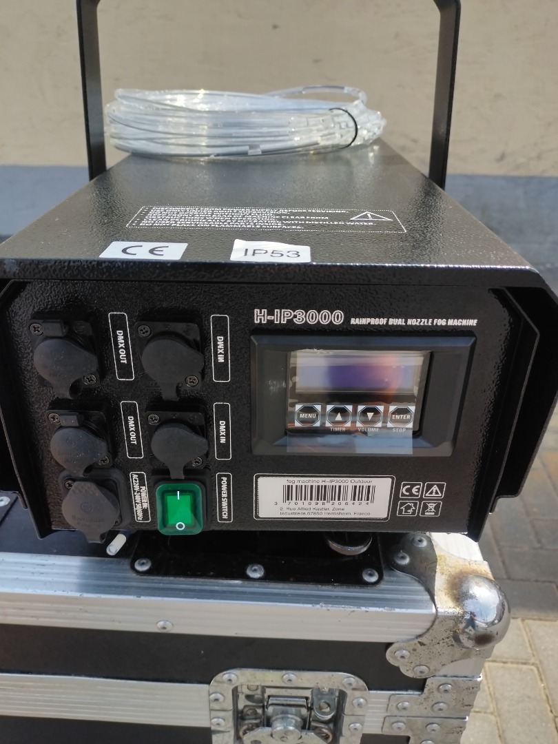 Die H-IP3000 ist eine hochmoderne, regensichere Hochgeschwindigkeits-Doppeldüsen-Nebelmaschine von DJPOWER, die die Schutzklasse IP53 aufweist. Ihr Edelstahlgehäuse garantiert Langlebigkeit und Feuchtigkeitsresistenz, wodurch sie sich ideal für Outdoor-Auftritte, Musikfestivals, Kulturtourismusprojekte und mehr eignet.