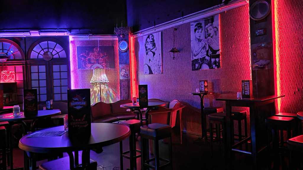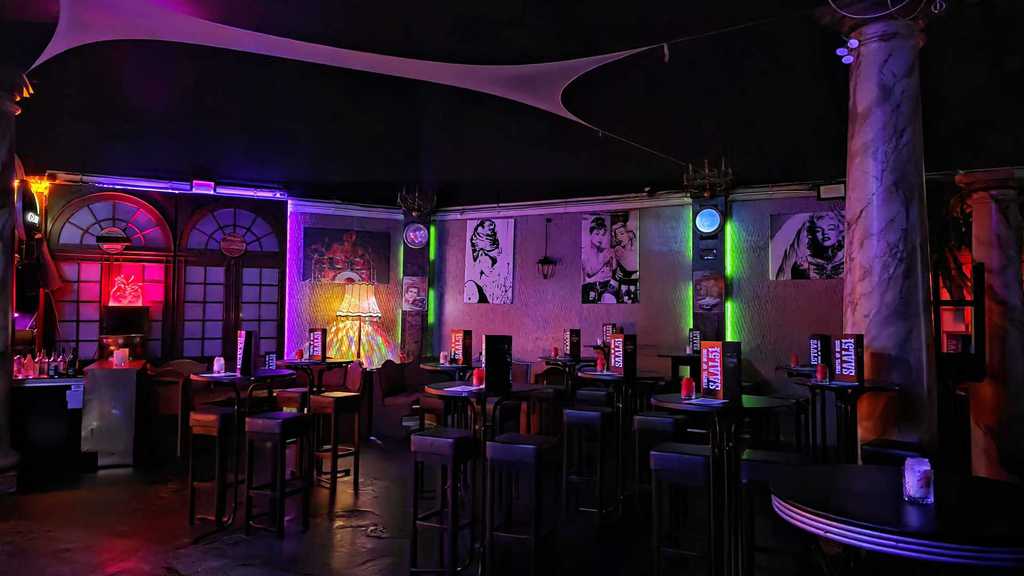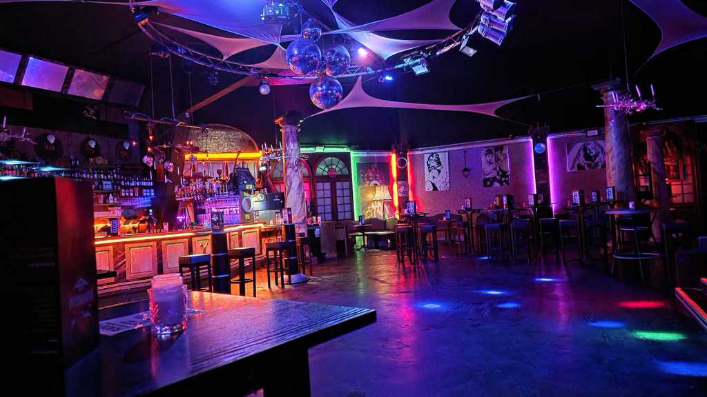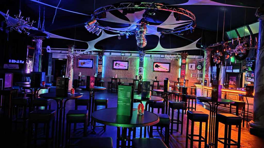 Dazu gehören: Lichttechnik, Musikanlage, Tische, Stühle, Kühltehken, Barbedarf, Dekoration, usw.