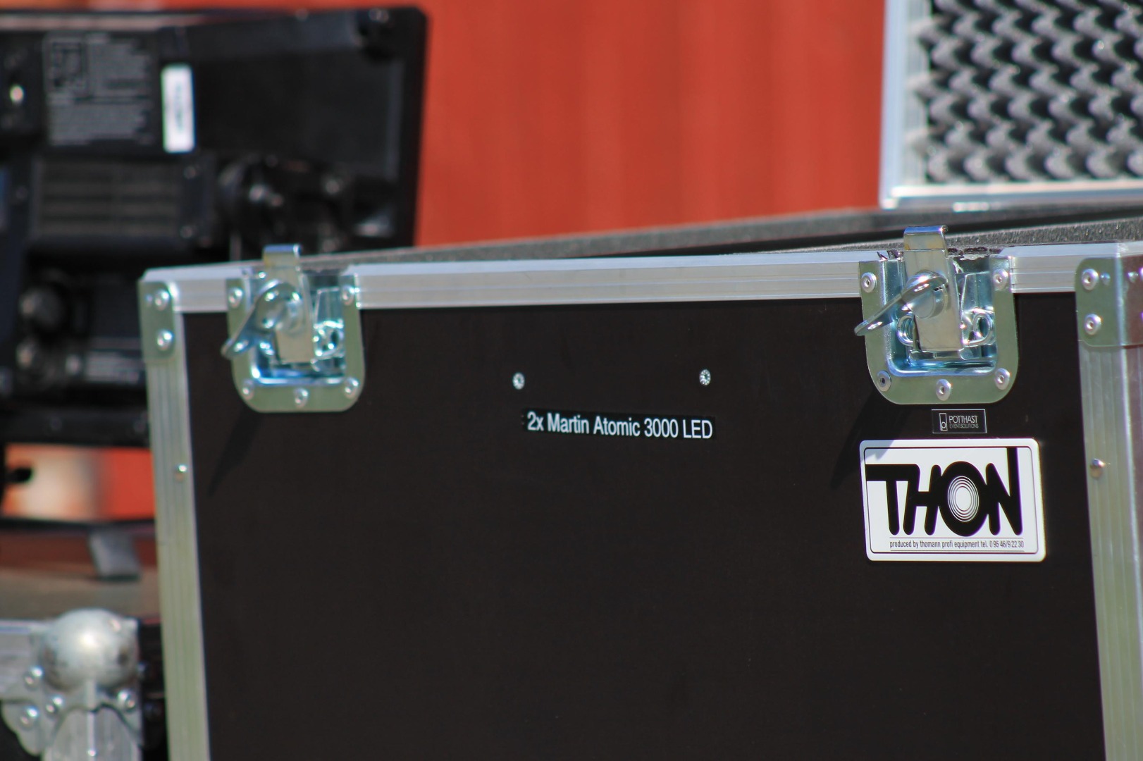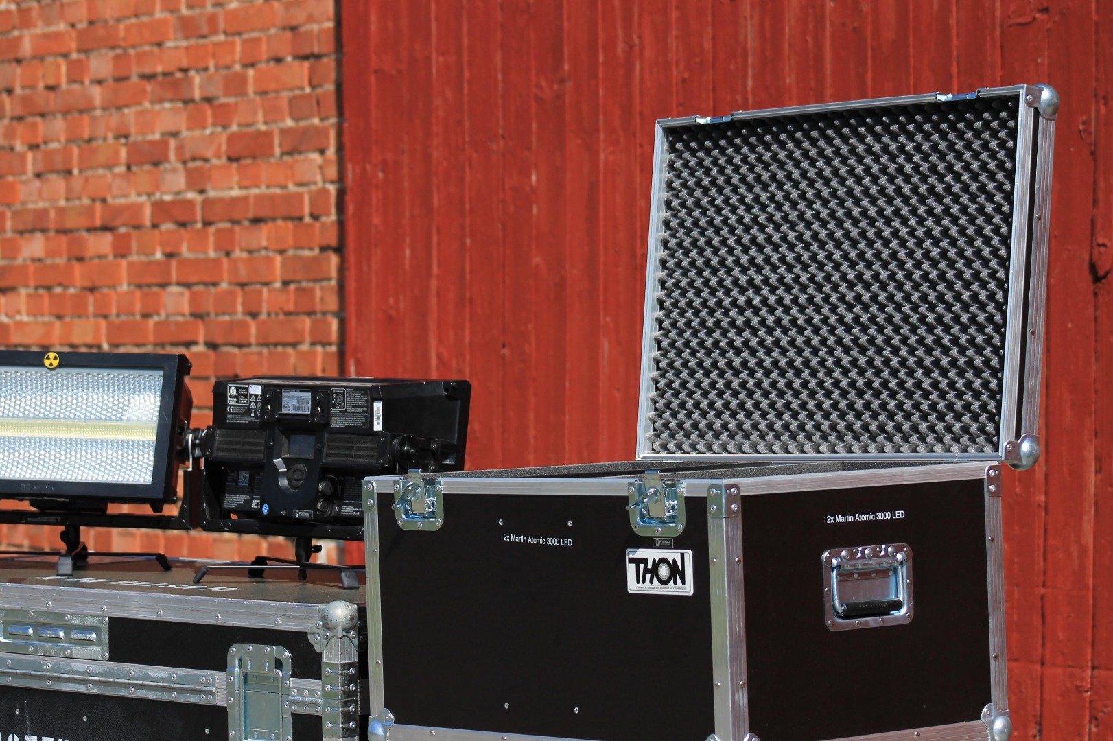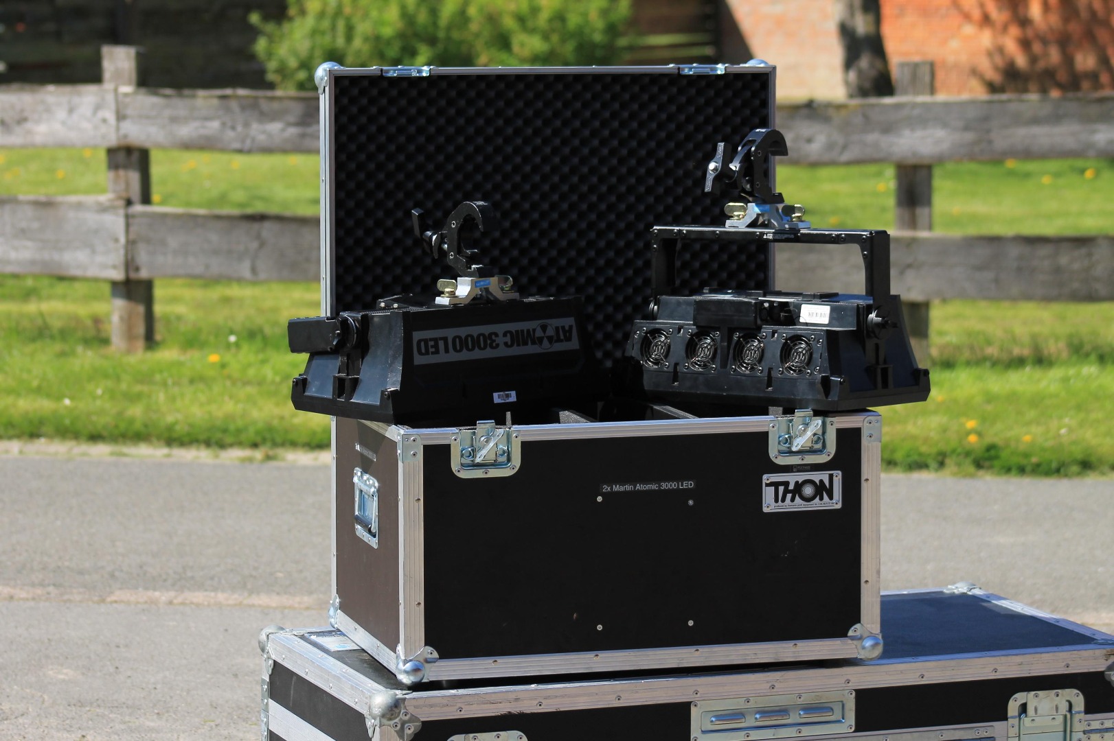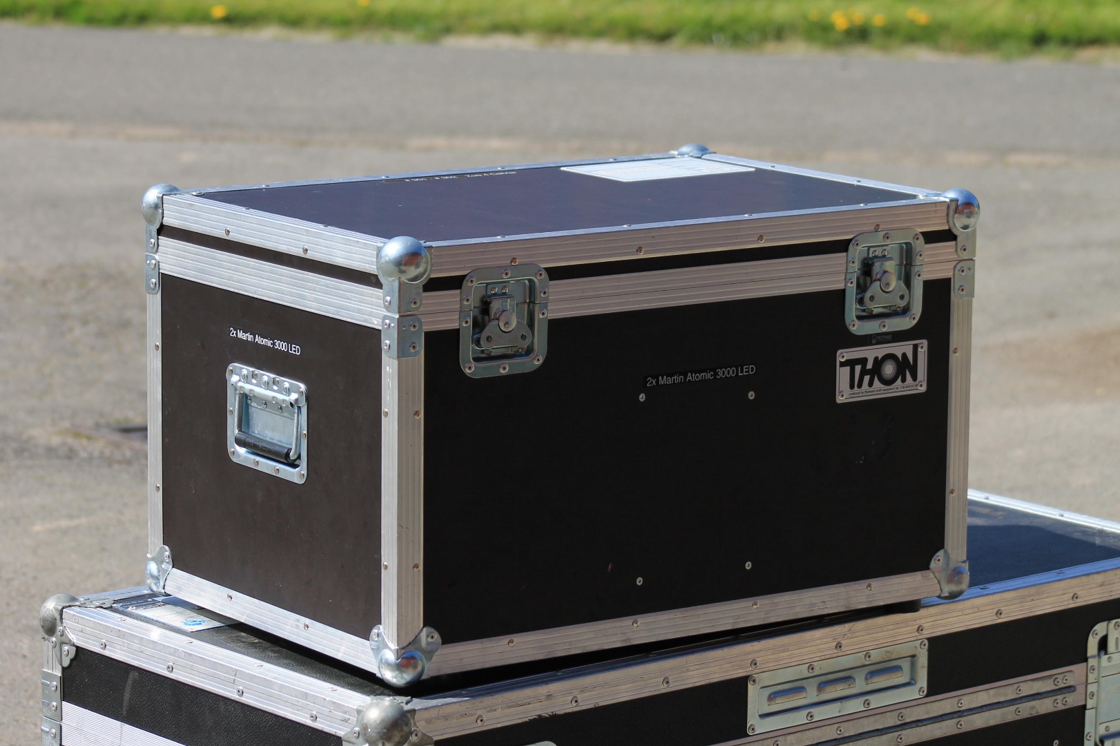 Up to 4 units of Martin Atomic 3000 LED strobe lights are available for sale, packed in custom-made Thon flight cases (2 units per case).