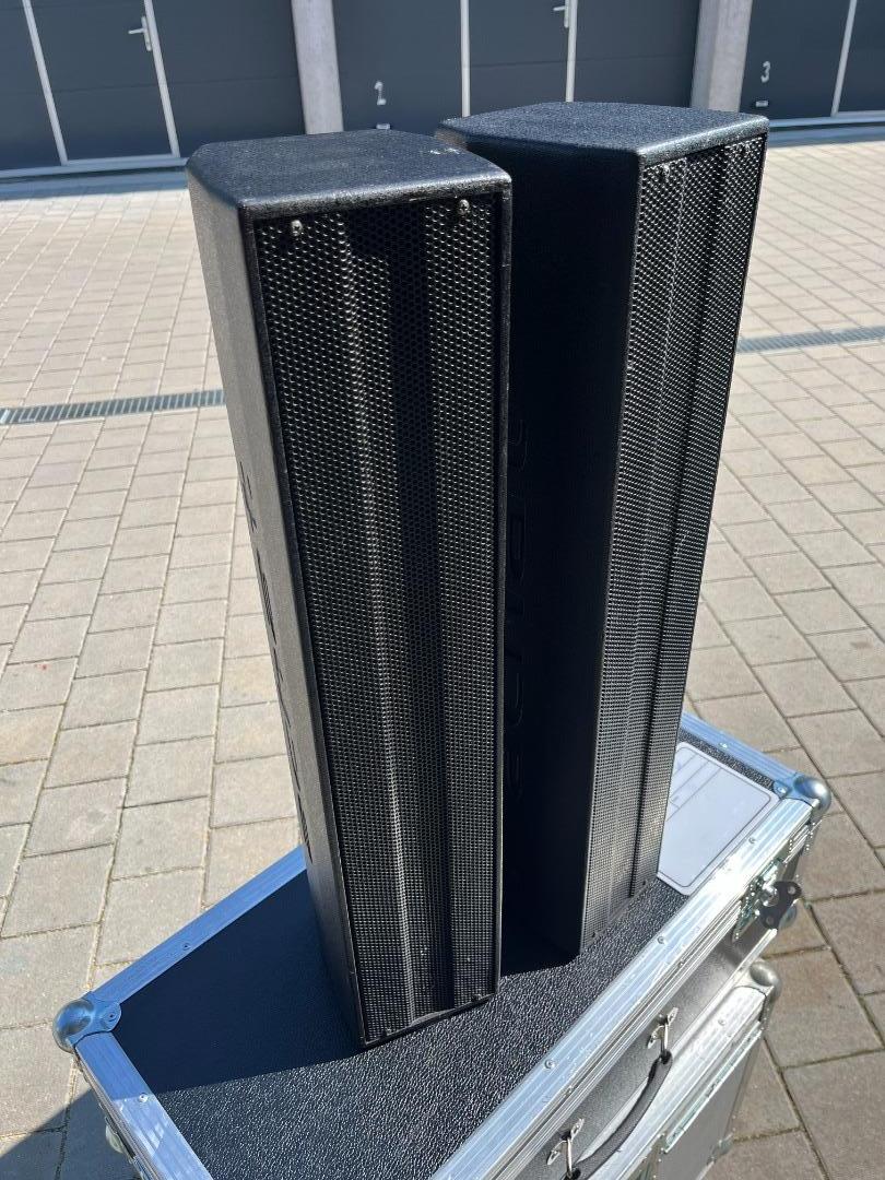 Die Lautsprecher haben unten den Winkel-verstellbaren Adam Hall Boxenflansch nachgerüstet.