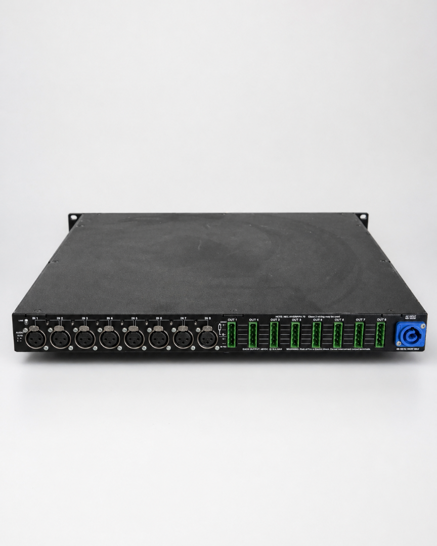 8 Ausgänge / Anschlussklemmen für kompatible Meyer Sound Lautsprecher