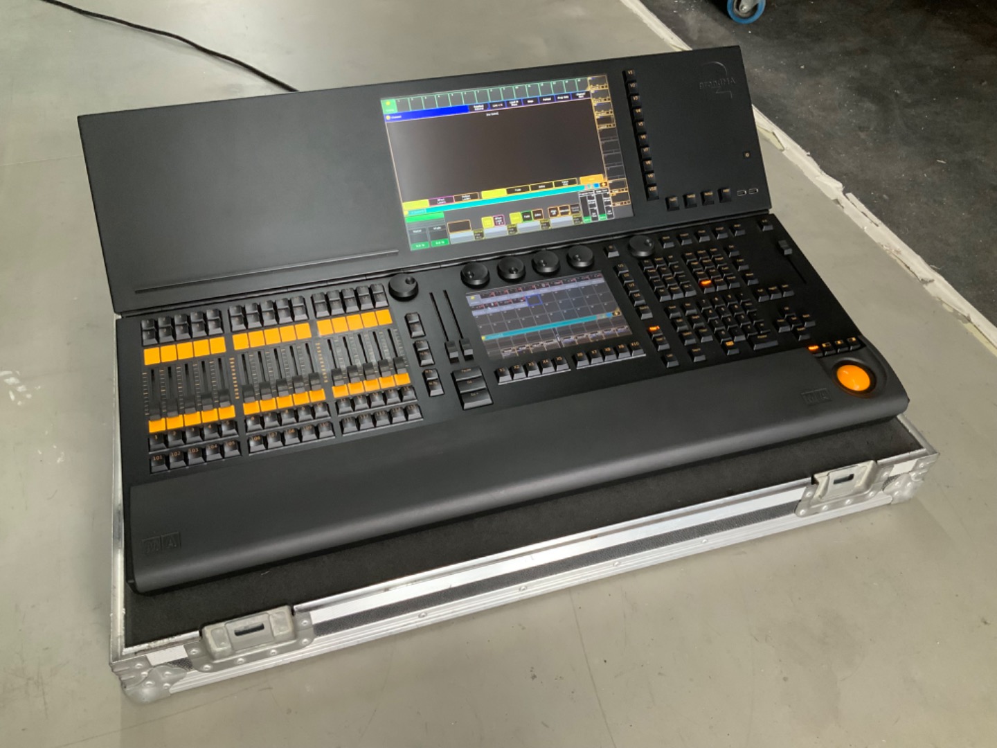 Verkaufen hier unsere MA-Lighting Grand MA2 Ultra Light inkl. schwarzen Amptown Case.