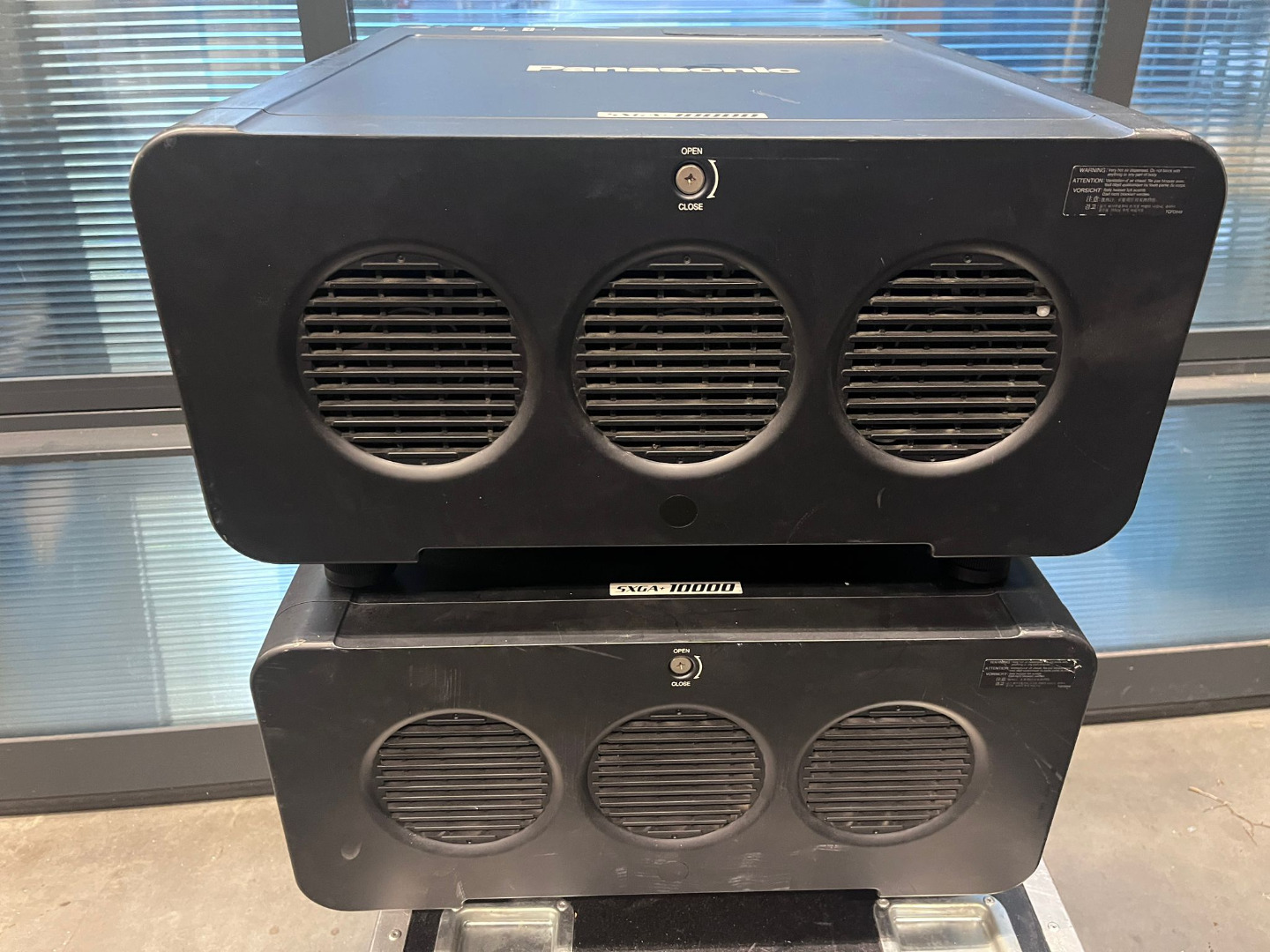 2 Panasonic projectors with 10,000 ANSI lumens.