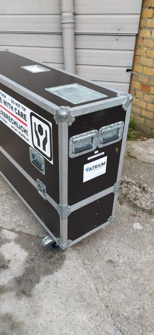 Gut erhaltenes Rollcase für bis zu zwei Displays 55". Das Case war ursprünglich für einen Bildschirm inkl. Ständer vorgesehen. Wir haben den Schaum so erweitert, dass zwei Diplays geladen werden können. Rollen und Verschlüsse sind voll funktionsfähig und das Case ist unbeschädigt. Lieferung in Berlin und Umland grundsätzlich möglich. Abholung gern in Berlin - Biesdorf.