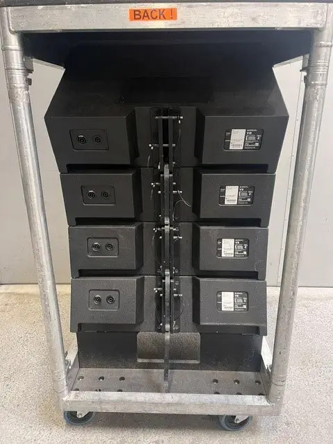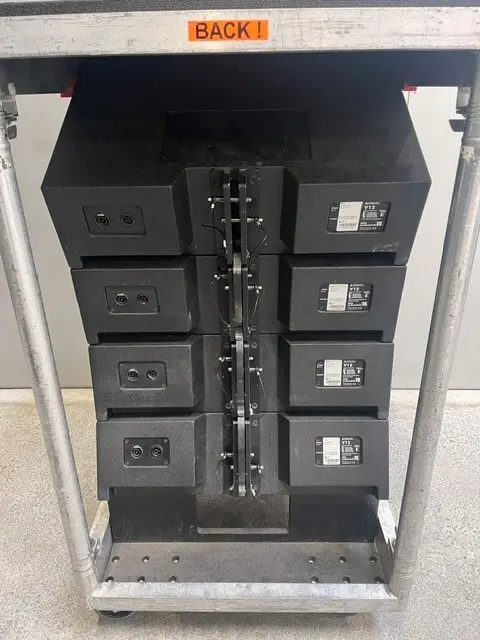Includes four V8 speakers (NLT4), four V12 speakers (NLT4), two touring carts for V8/V12, and two flying frames for V8/12 (Z5380.000) – a comprehensive loudspeaker system suitable for touring and professional live sound applications.