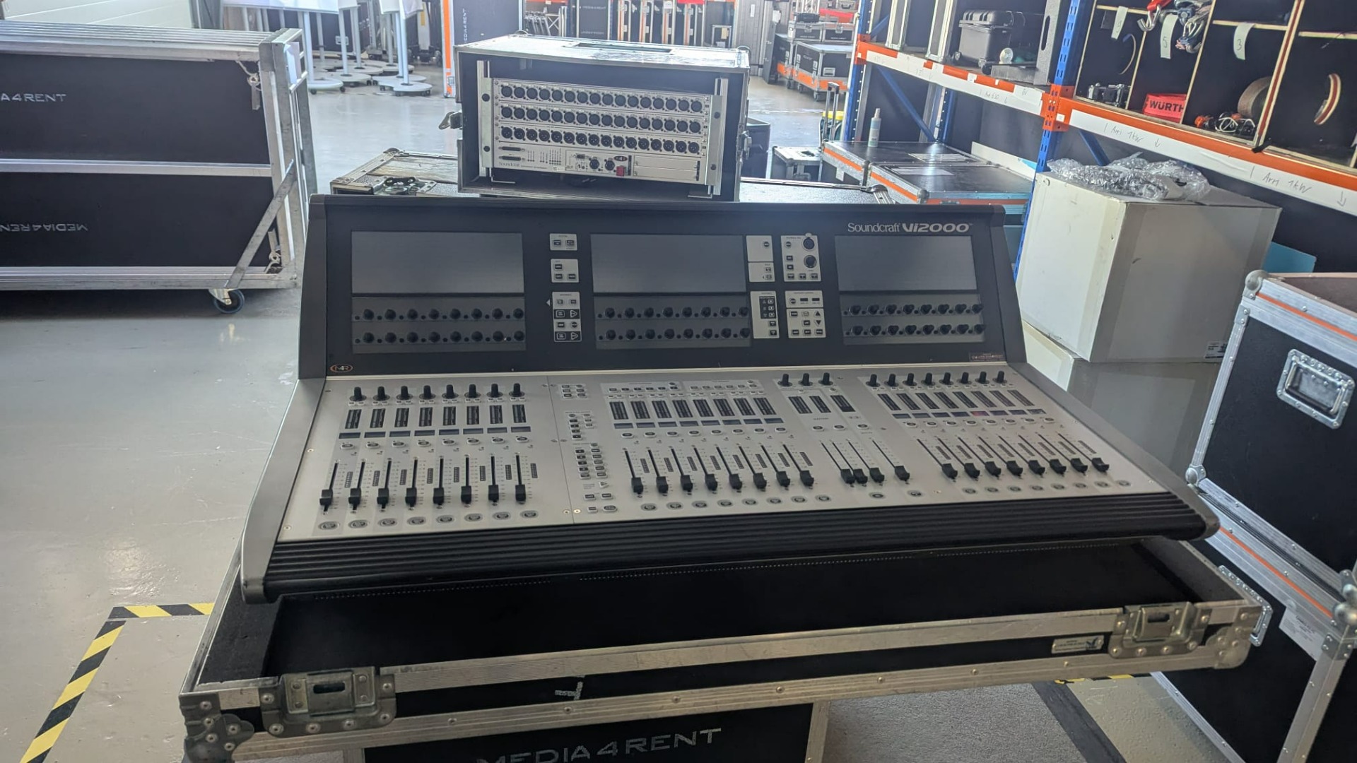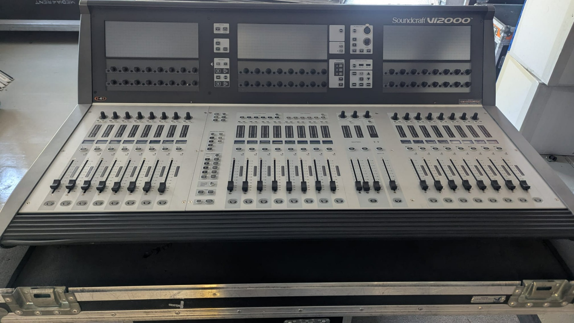 -Soundcraft Vi2000 Digitalmischpult – 3 Touchssreens, Eingang: 48x XLR, Ausgang: 16x XLR, 28 Fader, 96 DSP Kanäle, 4x AES/EBU, Madi, 4x Lexikon Effekte, BBS EQ´s, Compressor, Limiter, 2x PSU, 43Kg