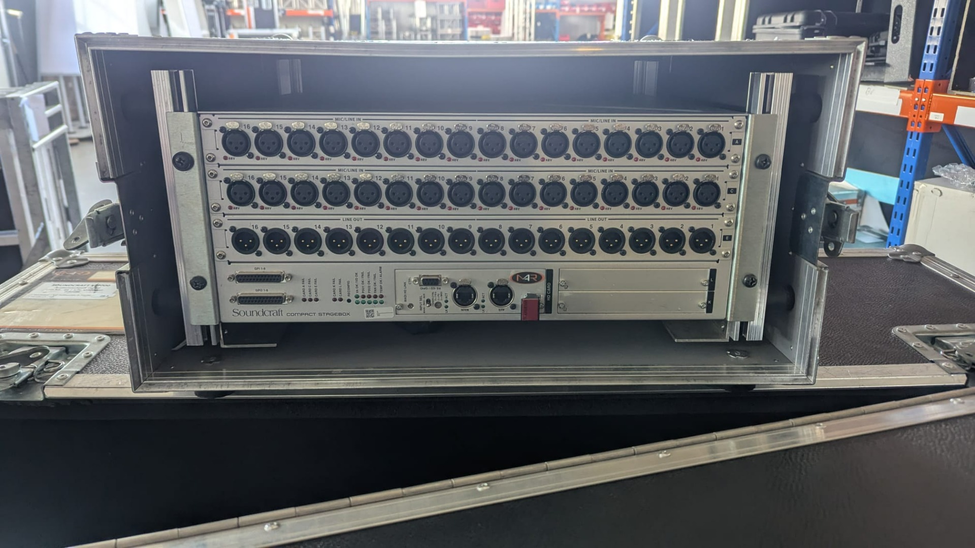 -Soundcraft Compact 32/16 Stagebox – Eingang: 32x XLR, Ausgang: 16x XLR, integrierte RJ45 Madi Karte Cat5, 2 Slots, 5HE, 10Kg