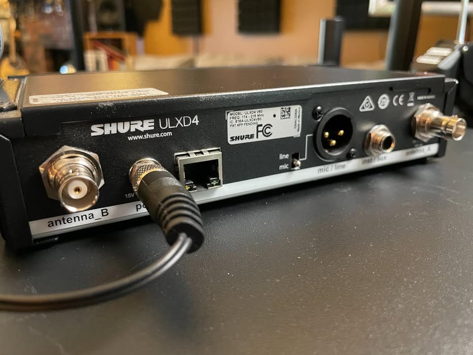 * 1x **Shure ULXD4** Digitaler Funkempfänger (V50: 174 – 216 MHz)