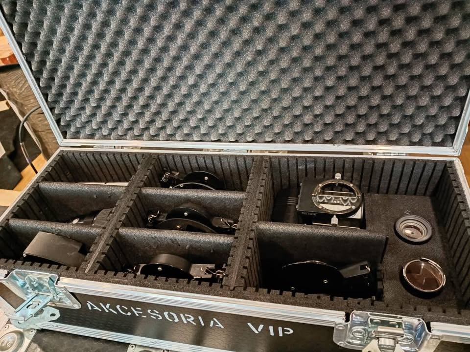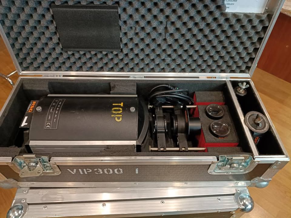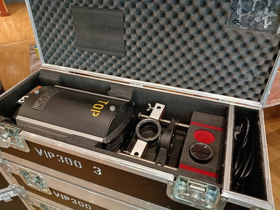 ale are in Cases. Sold with optics 100 and 80mm + gobo holder and lens Holder and power cable.