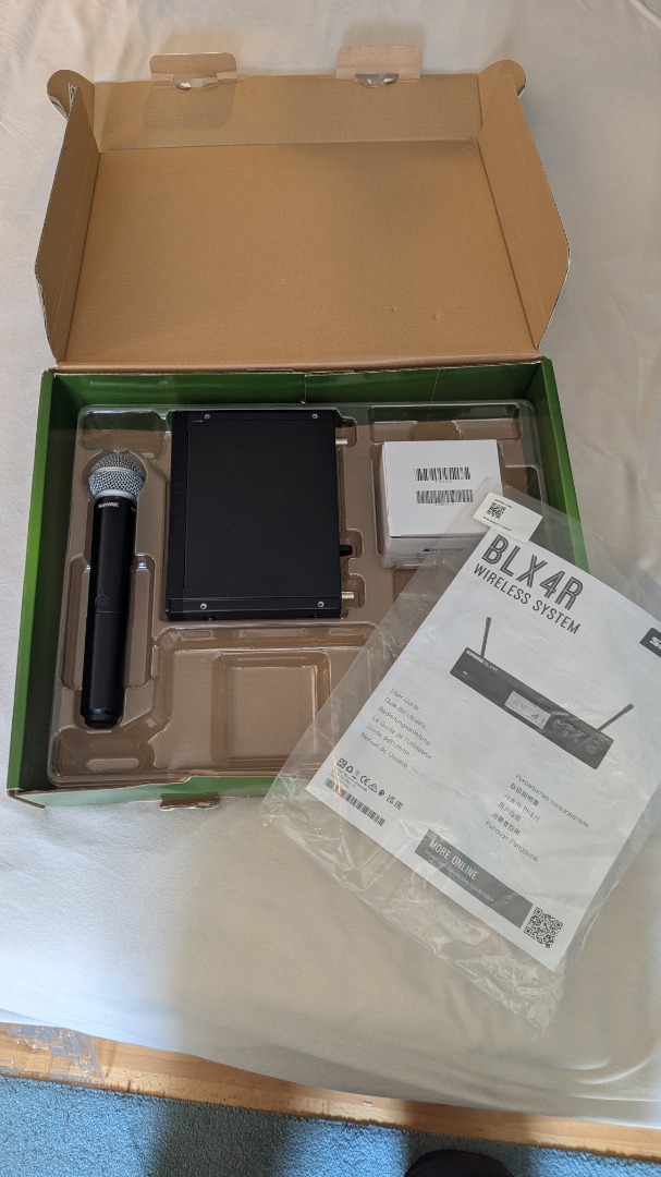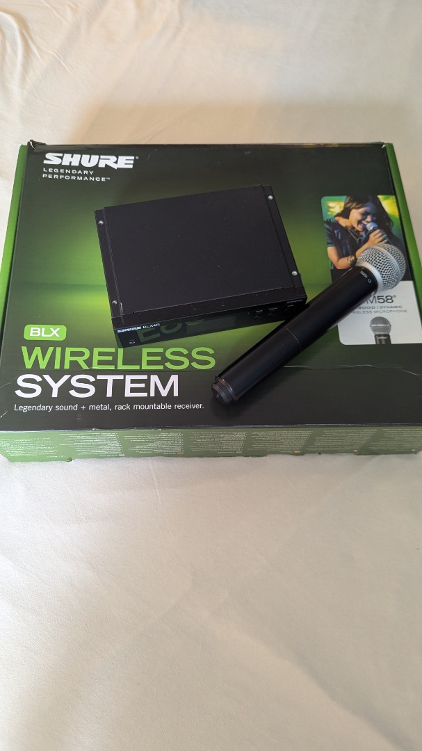 Ich verkaufe dieses Funkmikrofon System bestehend aus dem BLX4E Funkempfänger, BLX2 Handsender mit SM58 Mikrofonkapsel.