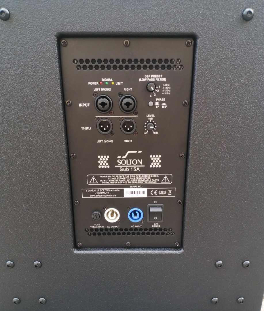 Active Tuning / Features: Volume, Variable crossover 80 – 200 Hz, Phase switch