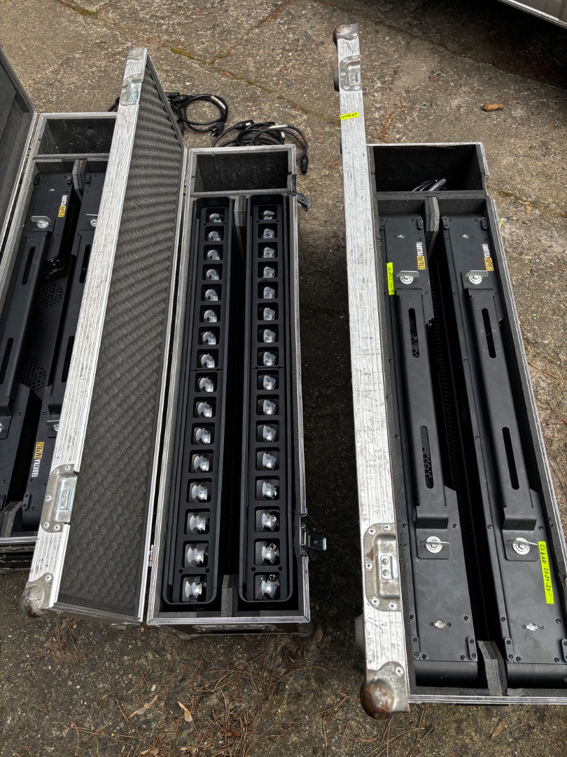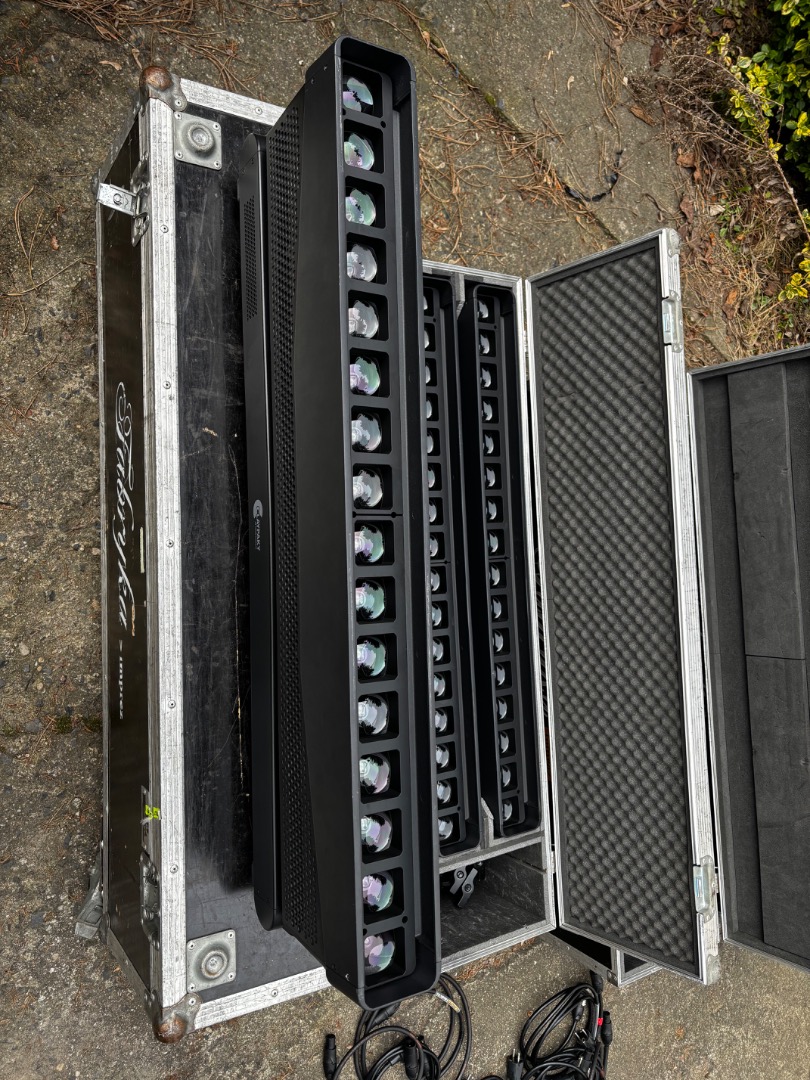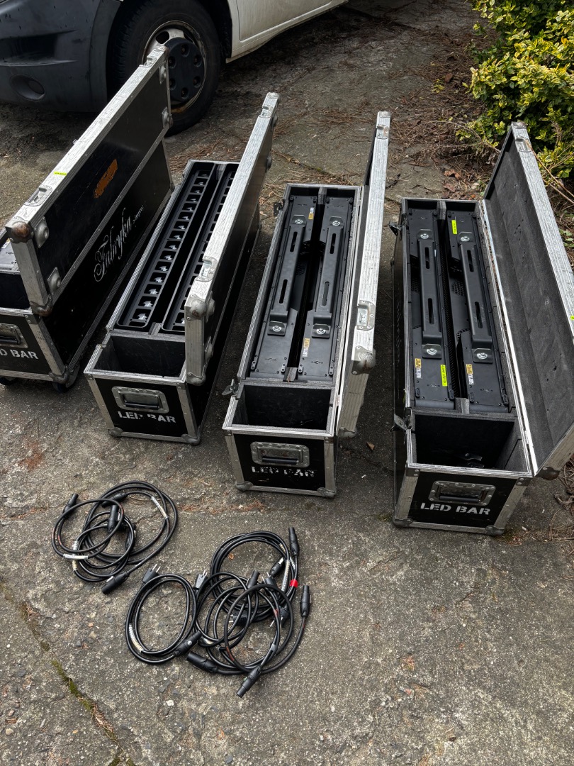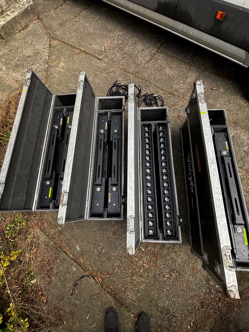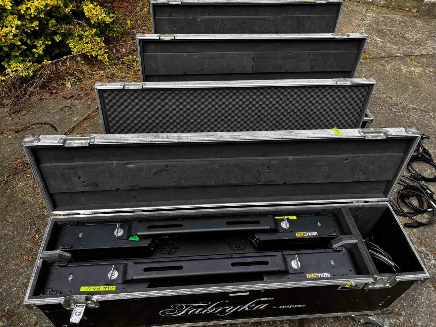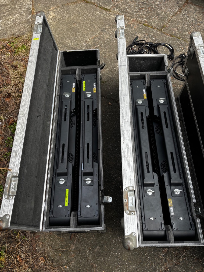 For sale: 8x Clay Paky Tambora Batten units. We prefer to sell the entire set. The fixtures are packed in pairs in flight cases. In total, there are 4 sets, each containing 2 units.