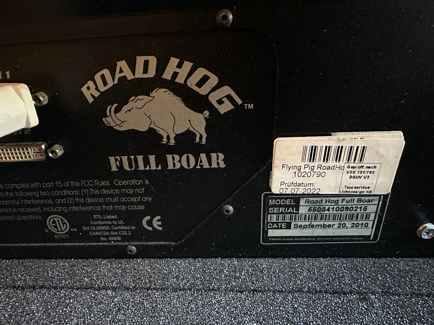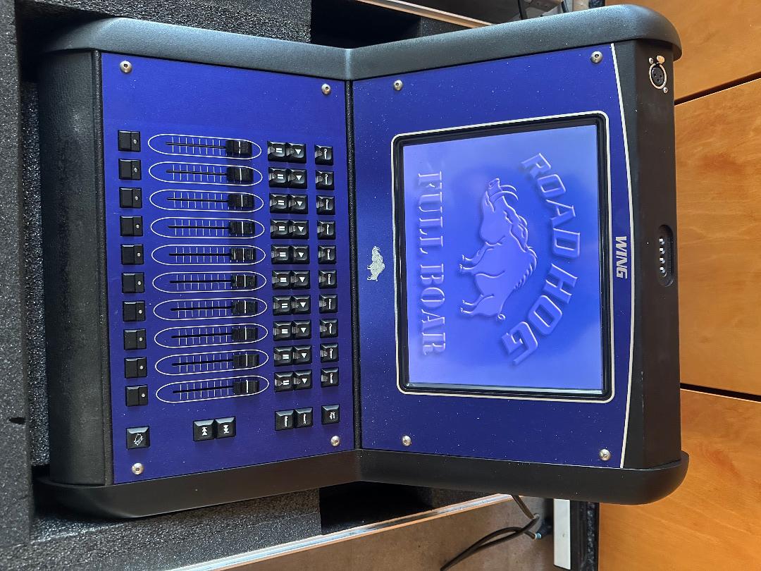 Wir verkaufen unsere High-End Systems Roadhog 3 Full Boar in gutem Zustand. Und dazu noch einen Playback Wing.