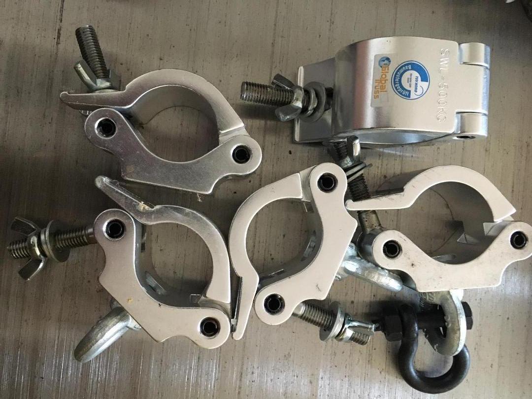 Gebe 5 Stück Global Truss Rohrschellen, silber (bis 500 kg) ab. Abholung gern in Heidelberg, Leipzig oder Berlin