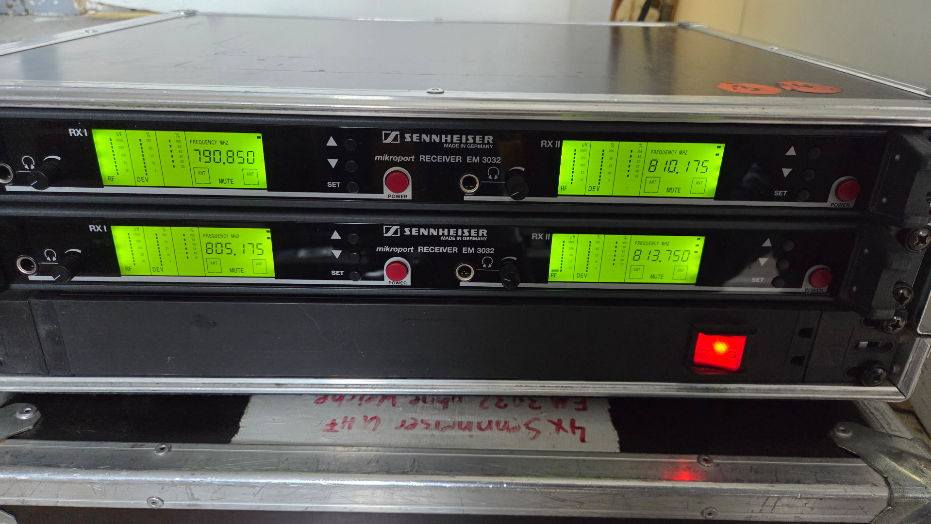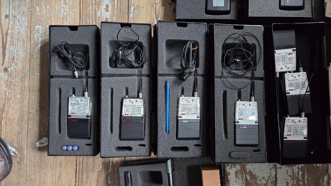 6 Kanäle Div. Empf. Sennheiser EM 3032 Doppel Kanal UHF 2-fach im Case mit Weiche (2 Antennen) Frequenzbereich von 790.850 bis 813.750 MHZ (aufgeteilt in festen 16 Kanälen), diverse Profi Antennenkabel, mit 2 Sennheiser Antennenplatten A2003 Frequenzbereich 450 bis 960 MHz mit 6 Sennheiser SK50 Taschensender mit 6 Ansteckmikros MKE 40, Geamtpreis 1000 Euro, war nie im Verleih.