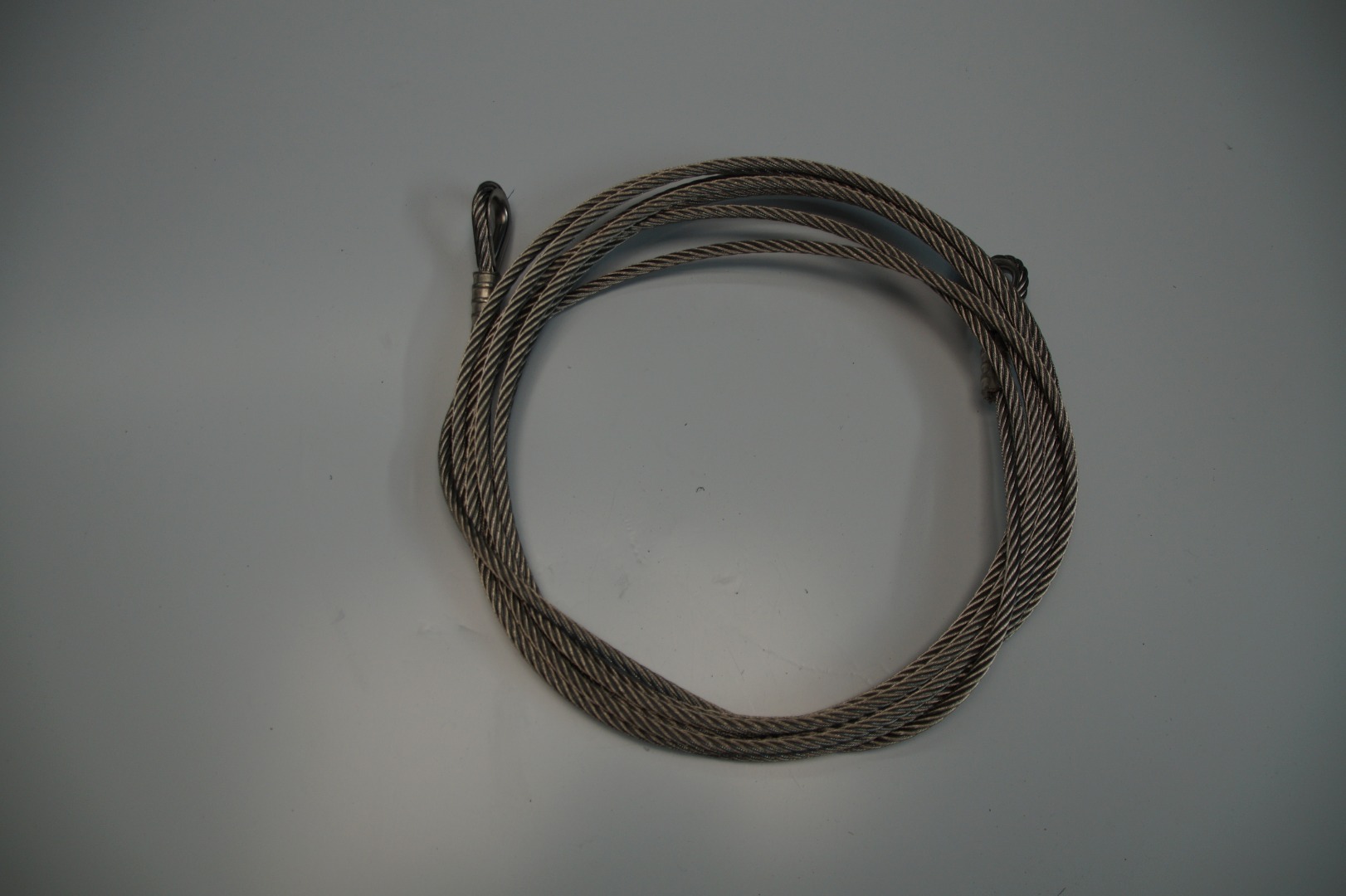 We sell 5,25m long steel wires with a diameter of 6mm, suitable for loads up to 1913 kg. The steel cables have so far only been used for one indoor installation.