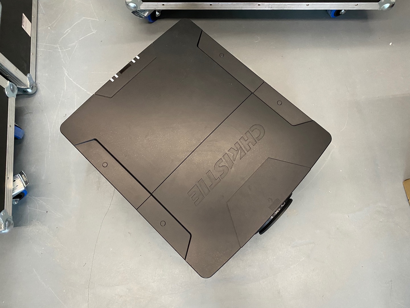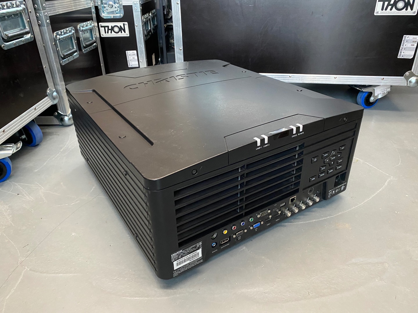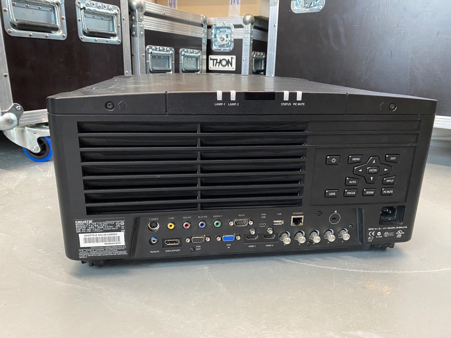 The Christie DHD775-E Projector is a 1080P Large Venue Projector. This lamp based projector is capable of displaying 7,000 Lumens at its brightest setting with a native resolution of 1920x1080 . The internal DLP technology touts higher contrast, less visible pixels and more portability. The unique projector lens has the ability to be shifted to allow greater flexibility in positioning the projector relative to the screen. This projector was first available for purchase in November 2012 and has been discontinued by Christie.