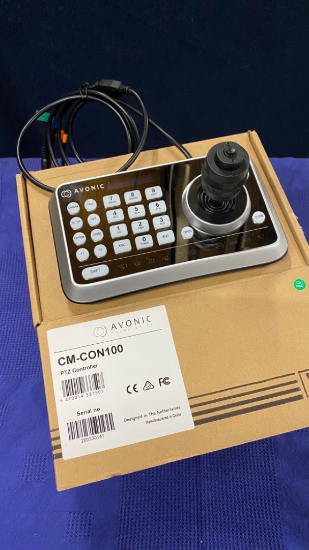 Der Avonic CM-CON100 ist ein kompakter PTZ-Kameracontroller. Mit diesem Controller ist es möglich, bis zu 255 Kameras zu steuern und bis zu 255 Voreinstellungen zu verwenden. Der Controller unterstützt das Visca-, Pelco-D- und Pelco-P-Protokoll und kann mit RS232/485 verbunden werden. Der Avonic CM-CON100 ist daher mit den Avonic-Kameras und auch mit anderen Marken kompatibel, die diese Protokolle unterstützen. Wechseln Sie einfach zwischen automatischem und manuellem Fokus, speichern und laden Sie Voreinstellungen und verbinden Sie mehrere Controller mit mehreren Kameras.