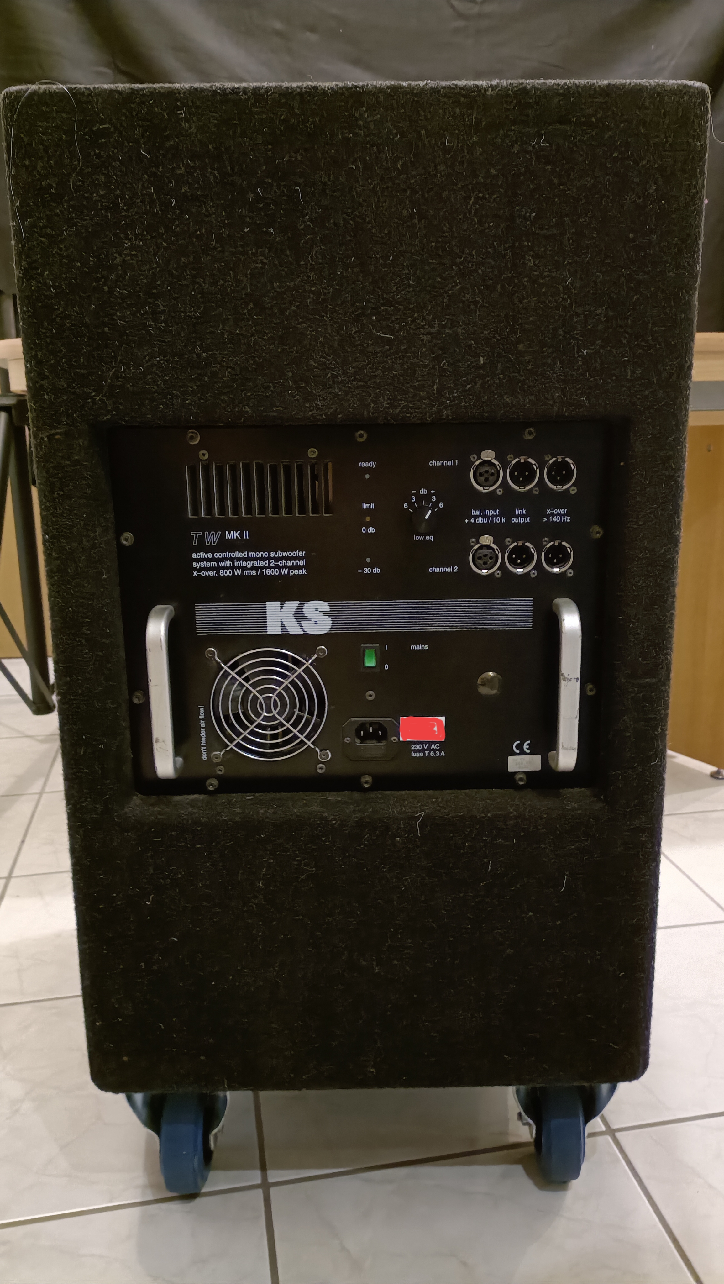 Biete gepflegten KS SUB den ich selbst 4-5 mal pro Jahr im Einsatz hatte. Kein Verleih! Gebrauchsspuren siehe Bilder. Lautsprecher wurde vor ca.15 Jahren von KS reconed und vor ca.10 Jahren wurde das Endstufenmodul bei KS überholt.