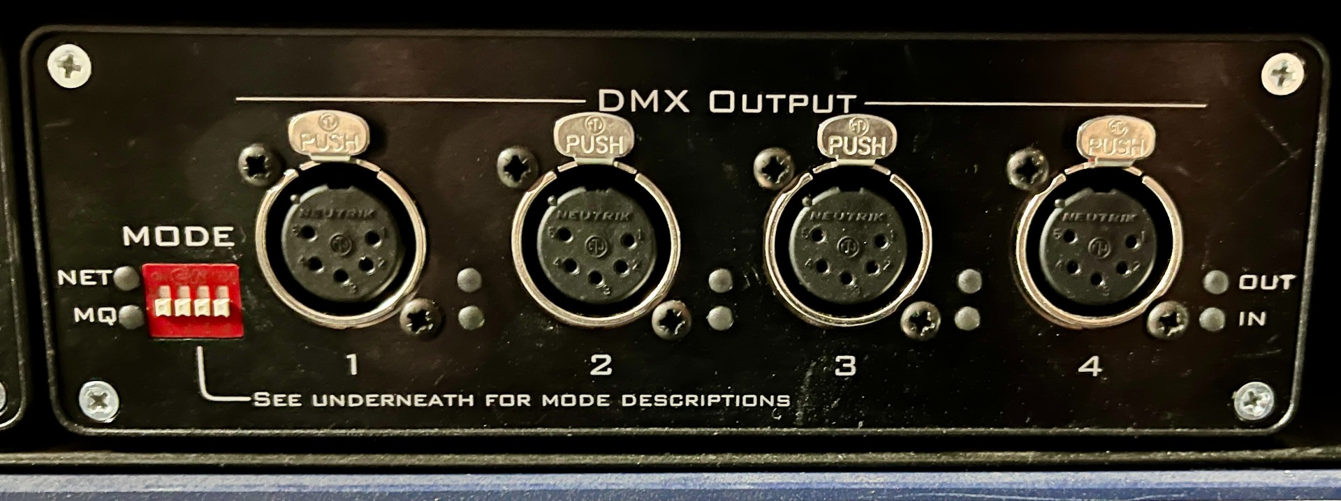 Vier DMX512-Ports (konfigurierbar als Ein- oder Ausgang)