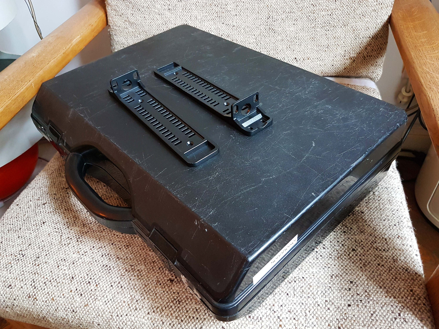 Dazu gibt es den abgebildeten Passkoffer, der aussen Gebrauchsspuren hat, da er von einen anderen Set stammt. Erfüllt aber seinen Zweck.
