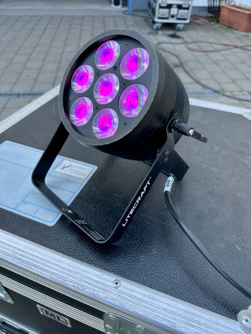 Der Litecraft BeamX.7 ist ein leistungsstarker LED-Scheinwerfer mit 7 Multichip-RGBW-LEDs, der sich ideal für professionelle Lichtanwendungen eignet. Mit einem Abstrahlwinkel von 10° (erweiterbar auf 25° durch den mitgelieferten Frostfilter) bietet er vielseitige Einsatzmöglichkeiten – von präzisen Beam-Effekten bis hin zu flächiger Ausleuchtung.