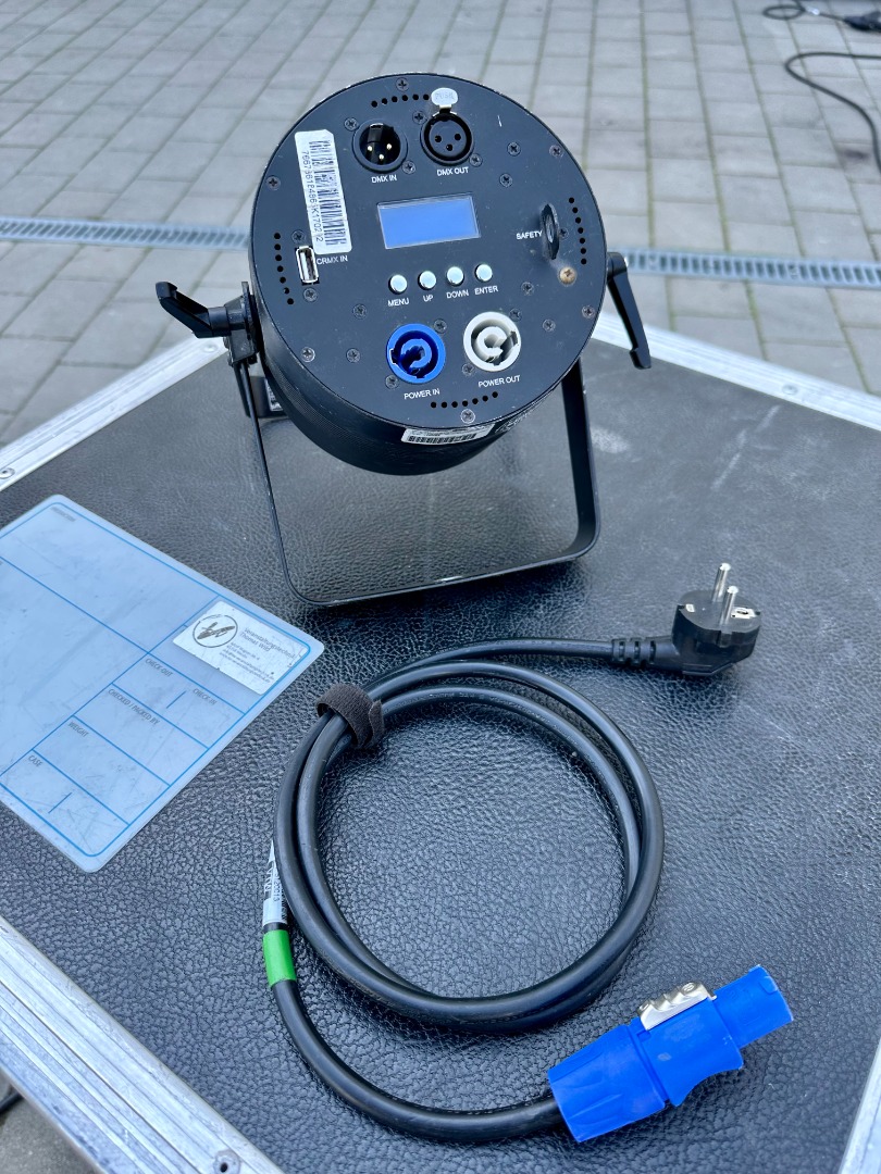 • Anschlüsse: 3-pol XLR DMX In/Out, PowerCON In/Out / 5-Pol Umbaukit beiliegend, CRMX