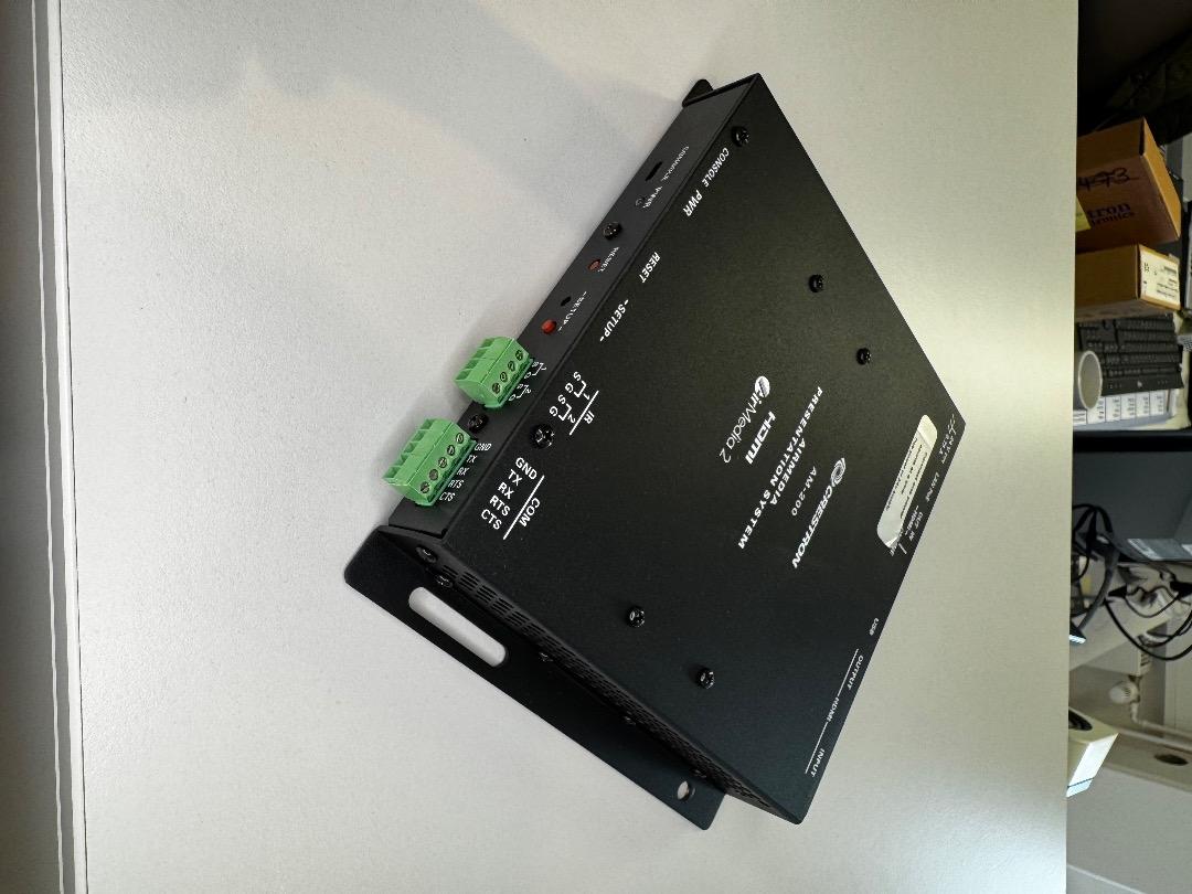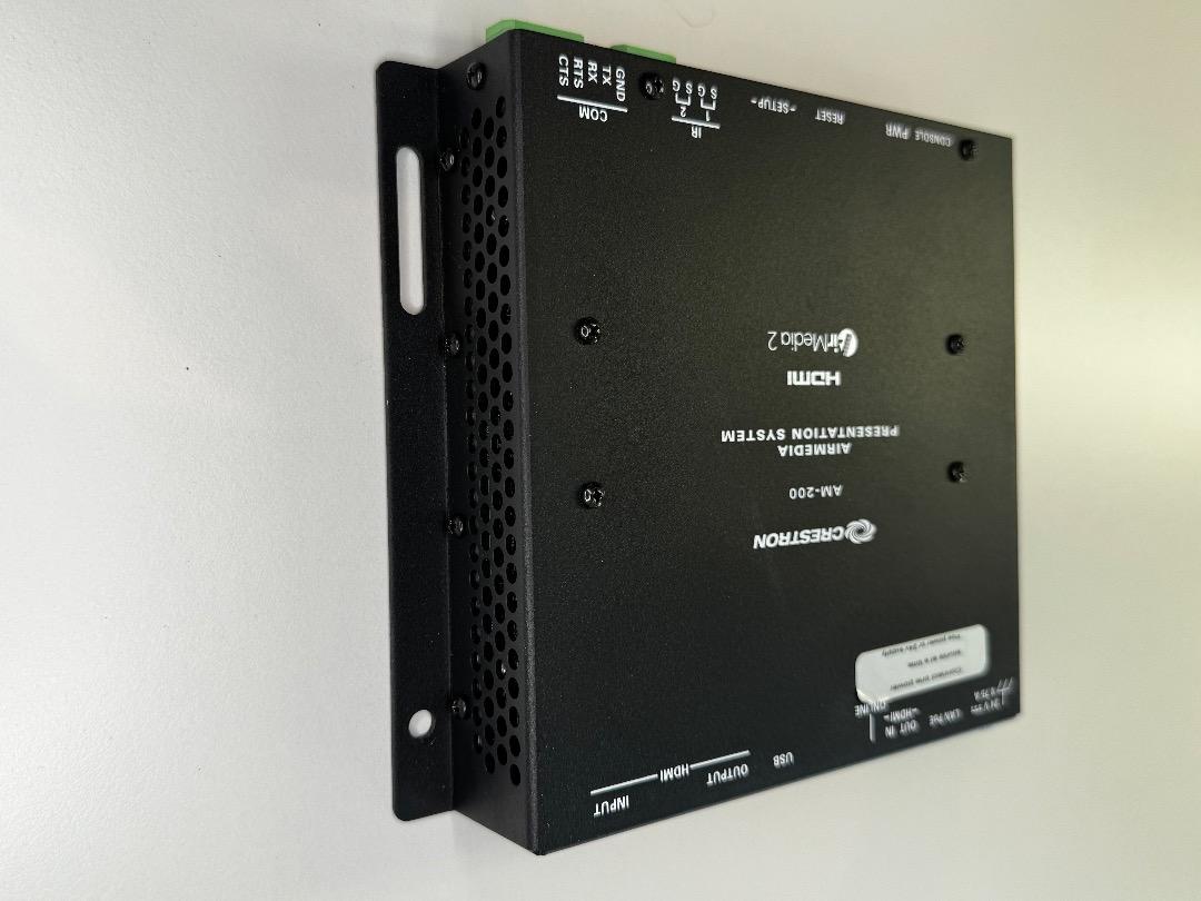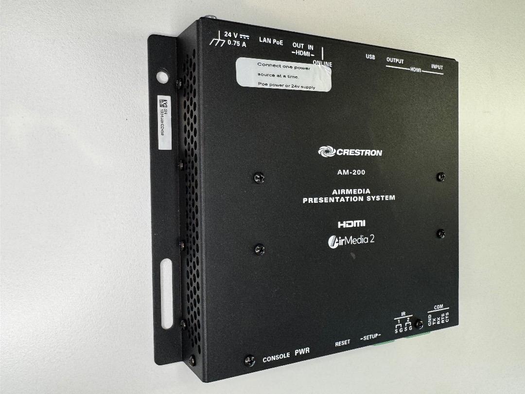The Crestron AM-200 is a professional presentation system for wireless and wired transmissions in meeting rooms, lobbies, lounges, or open workspaces. It is ideal for companies with flexible workplace structures and the use of mobile devices.