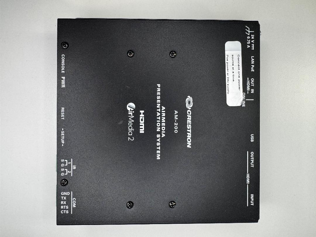 The Crestron AM-200 Air Media is in very good used condition (see pictures). The original packaging and manufacturer's description are not available. The power cable is not included, but is available upon request.