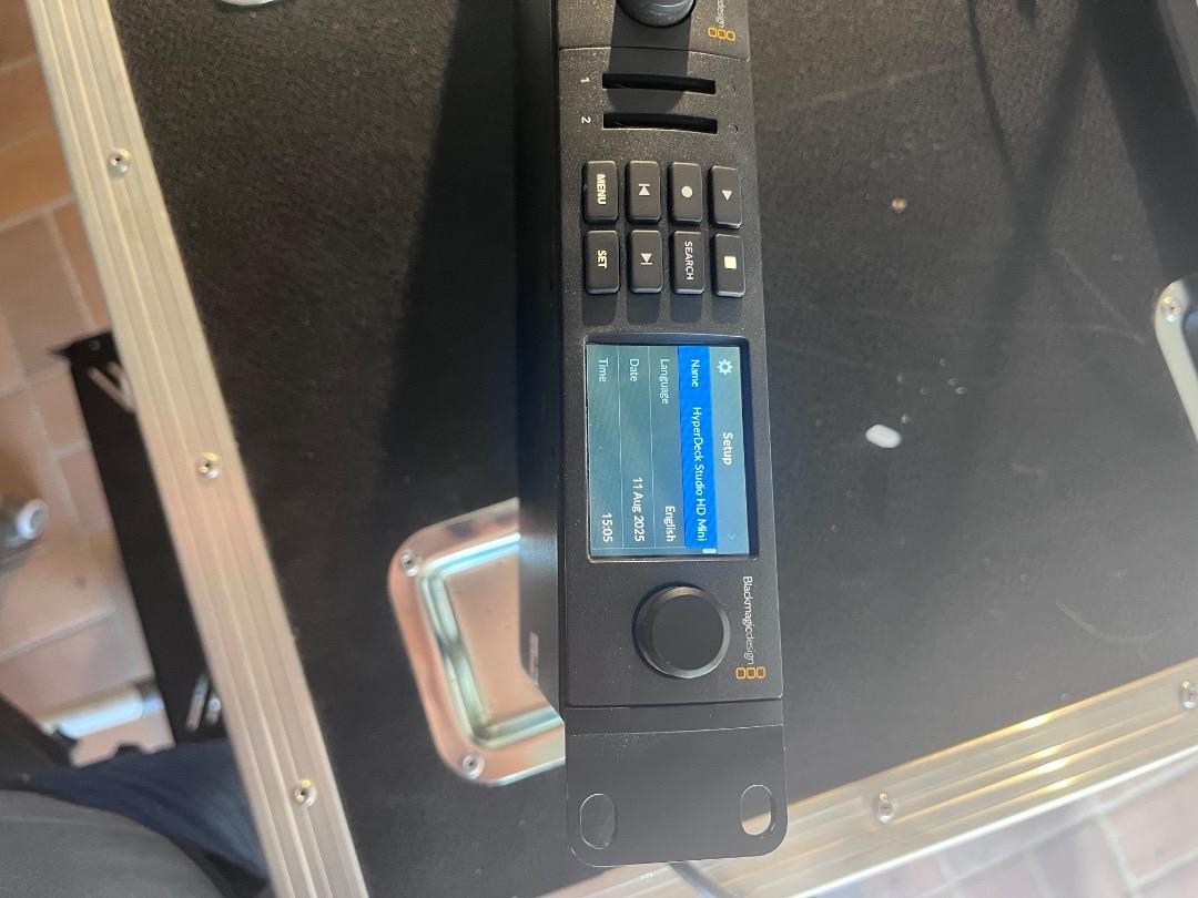 Das kleinste aller HyperDeck Studio Modelle hat den Formfaktor der Teranex Minis. Das modulare Design ermöglicht die Installation dreier HyperDeck Studio HD Minis in einer Teranex Mini Rack Shelf auf einer Rackbreite. Alternativ stellen Sie den Minis andere Produkte wie Mischer, Konverter oder Streaming-Prozessoren zur Seite. Die Minis sind klein mit mächtigen Features: 3G-SDI-Ein- und Ausgänge, HDMI-Ausgang, duale SD-Kartenslots, integrierte Takt- und Timecodegeneratoren, Bedienelemente an der Frontblende sowie AC- und DC-Strombuchsen. Über den USB-Port mit einem Computer verbunden fungiert Ihr HyperDeck Studio HD Mini wie eine Webcam und Sie können jede Videosoftware verwenden.
