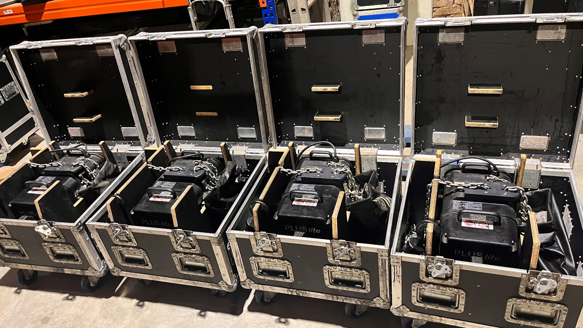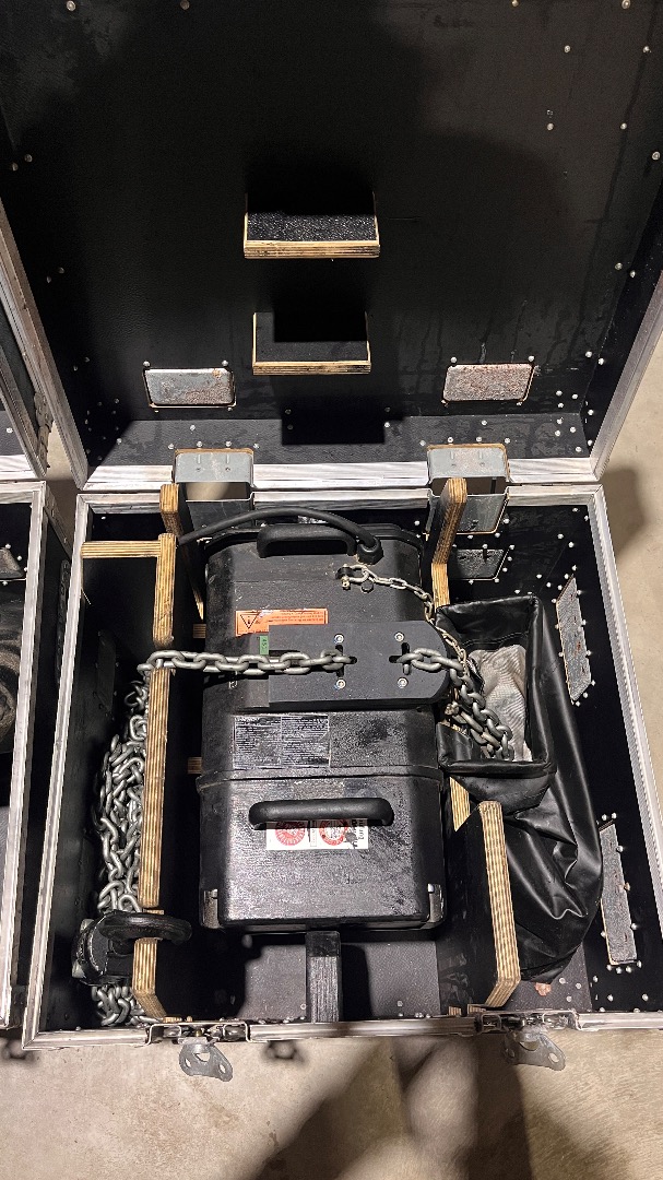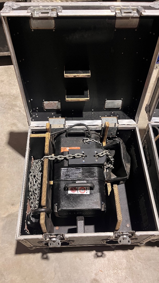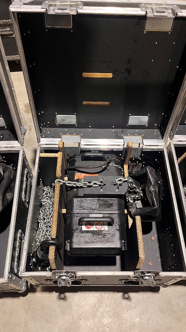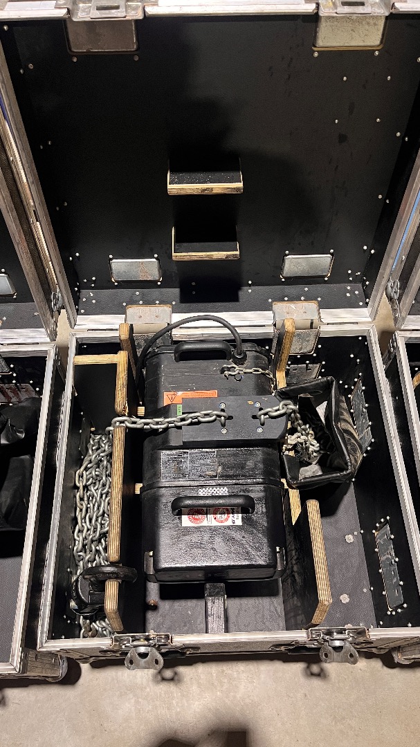 Zum Verkauf kommen insgesamt vier D8+ 500 kg Motorkettenzüge inklusive Amptown Case.