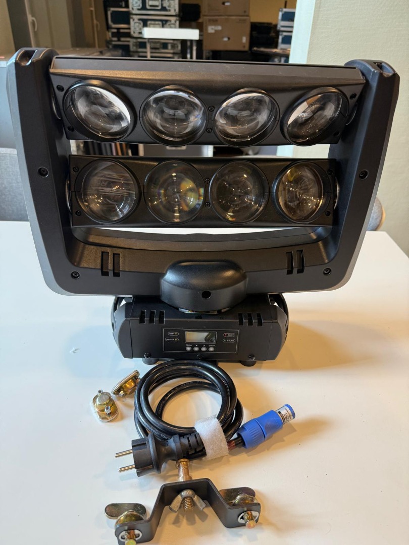 Der Crazy 8 ist ein spektakulärer Moving Head von American DJ. Zwei voneinander unabhängig bewegbare LED Beam Bars verteilen messerscharfe Strahlen durch den ganzen Raum. Die 8 LEDs haben jeweils eine Leistung von 8 Watt und einen engen Abstrahlwinkel von 3,5 Grad.