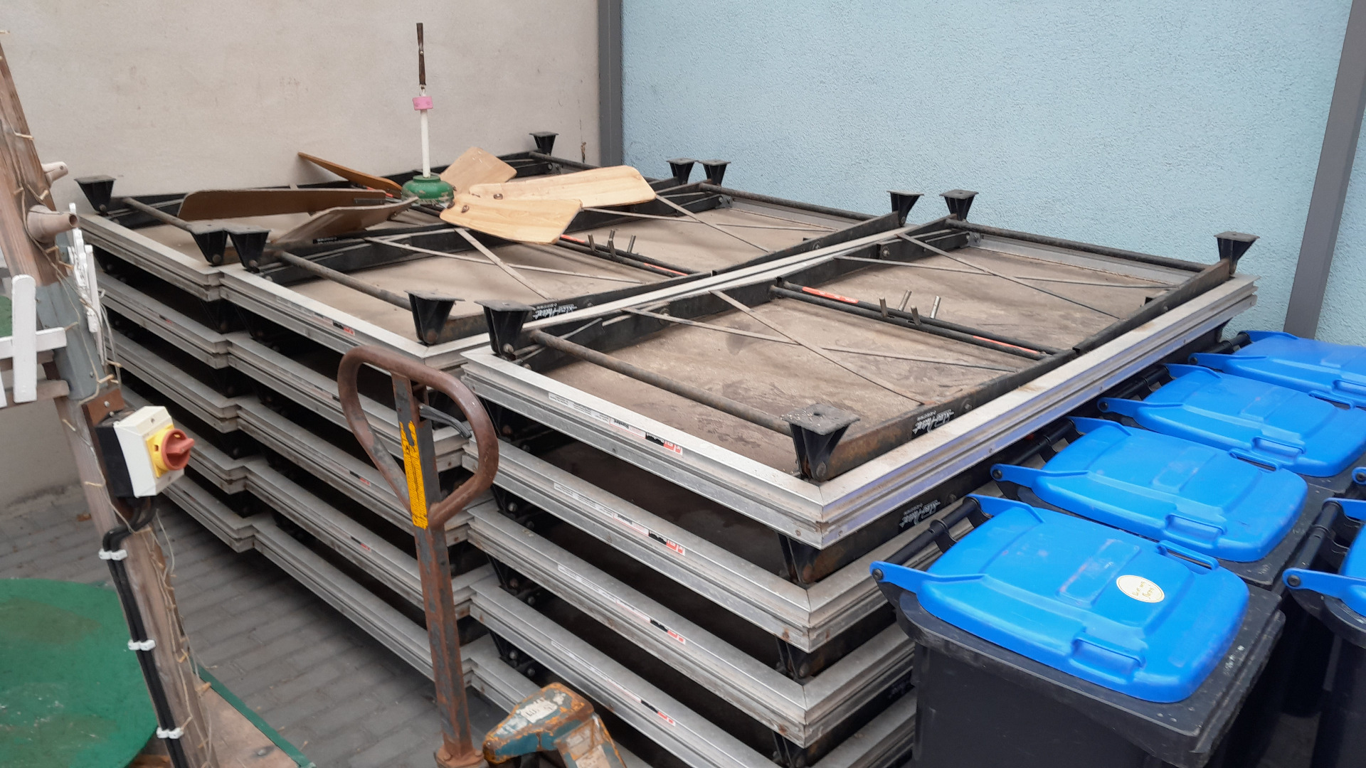 Die Bühne ist abgebaut und in sofort einsatzbereitem Zustand.